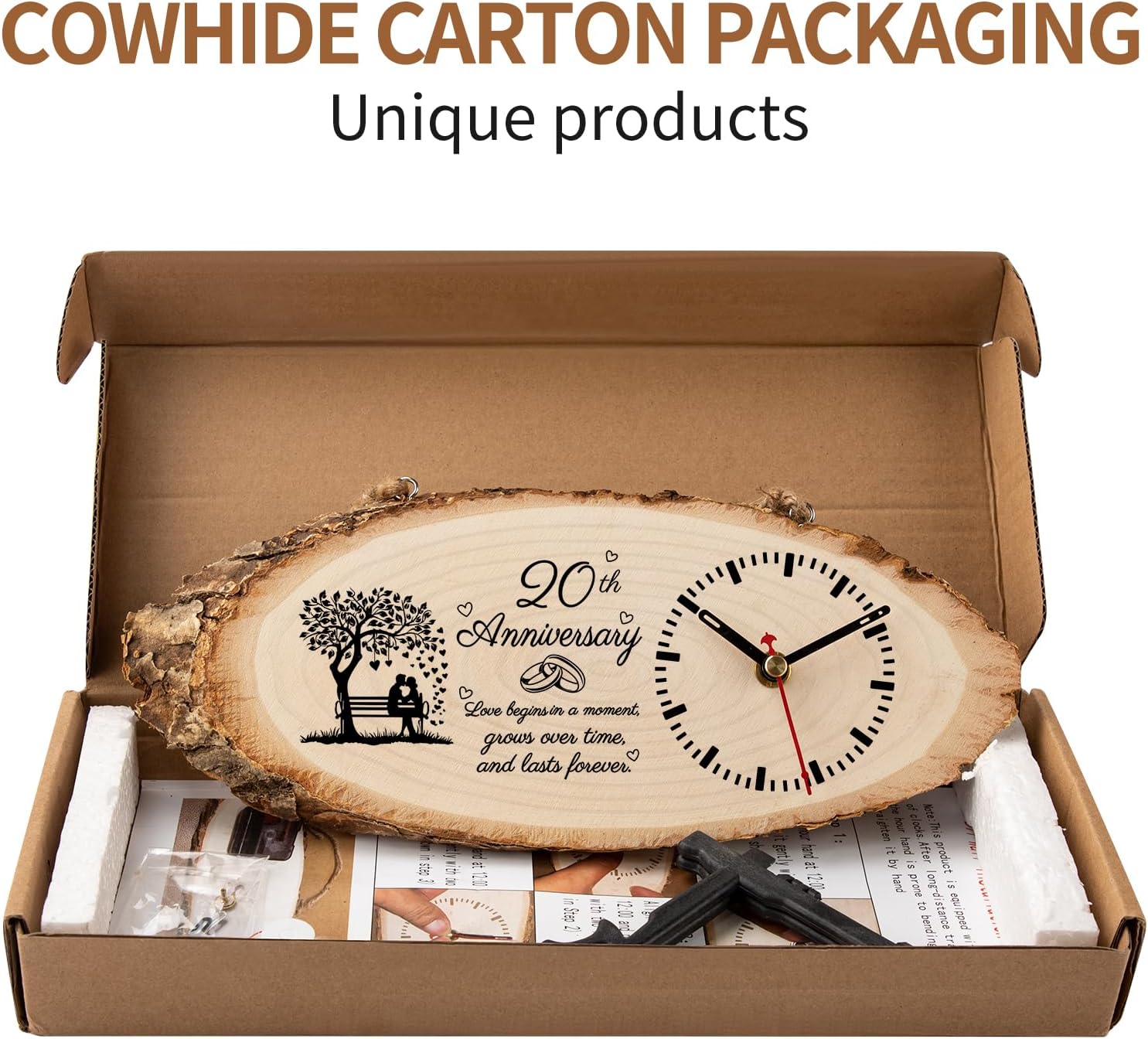 - Romantic Keepsake: The 20th anniversary decorations can be placed on the desk shelf or bedside as 20 year anniversary gifts for him. The surface on this 20th anniversary gift is also engraved with meaningful quotes. Your love grows stronger with time like a clock.