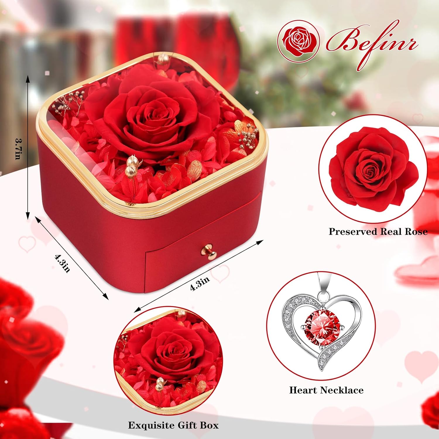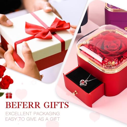 - PRESERVED REAL ROSE WITH NECKLACE:Beferr Forever Roses are made of high quality real roses with a unique preservation process that never fades, signifying everlasting love. For the upcoming special day, pick one in her favorite color and create more surprises.