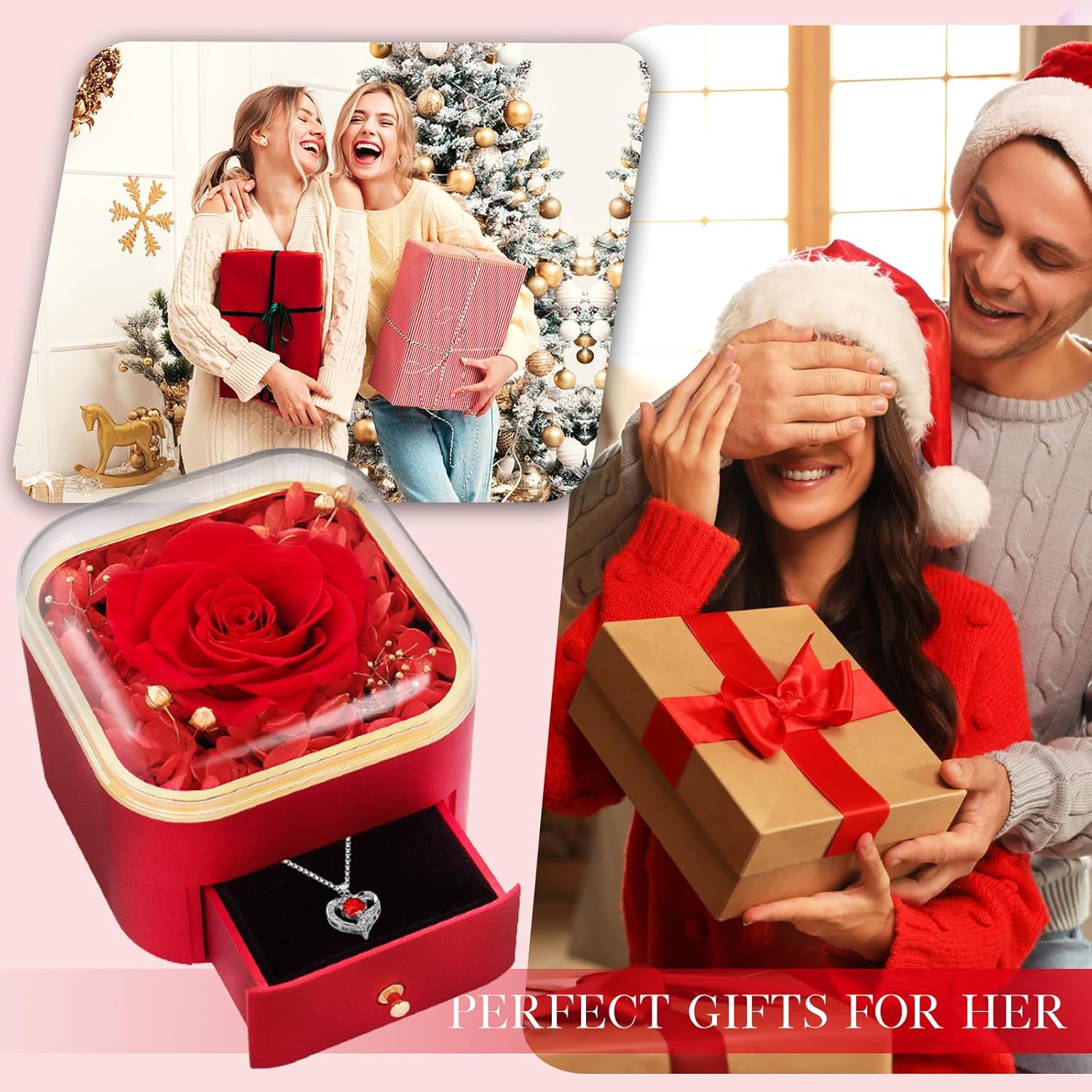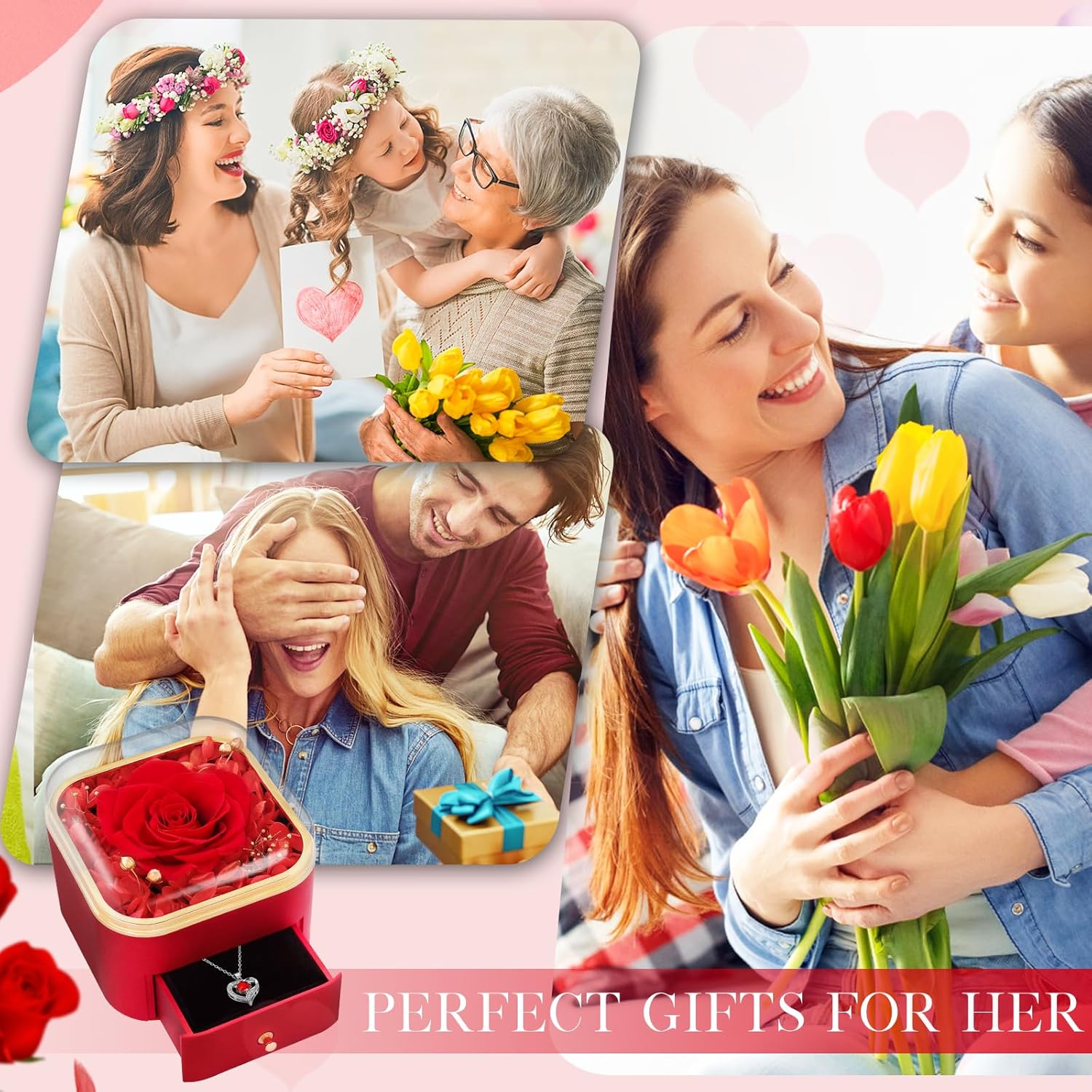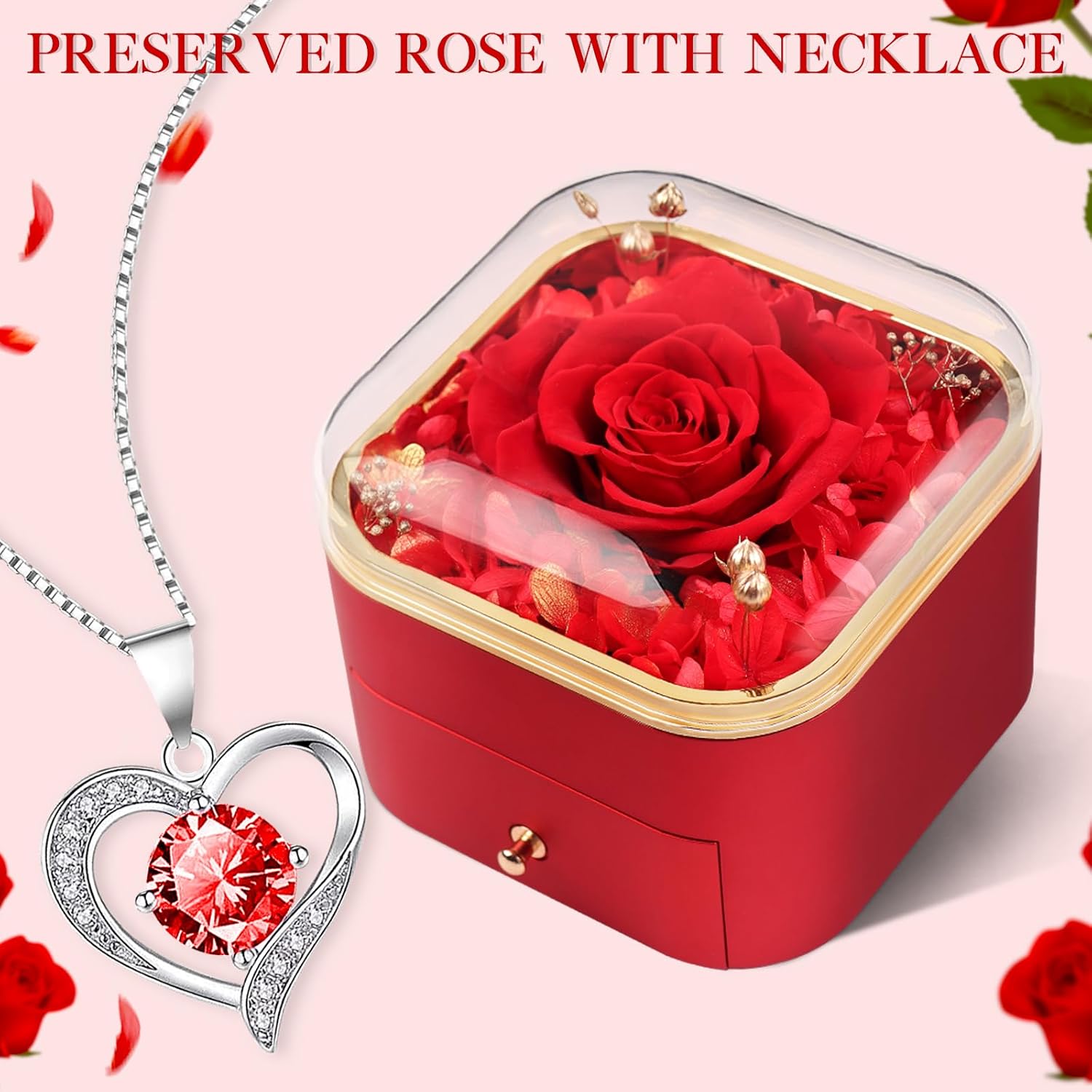- UNIQUE BIRTHDAY GIFTS FOR HER: Uniquely designed heart necklace and long-lasting beautiful forever roses make a well-presented gift. A charming eternity flower and a heart necklace will keep your memories alive for years to come, making this the perfect gift for your mother, wife and girlfriend.