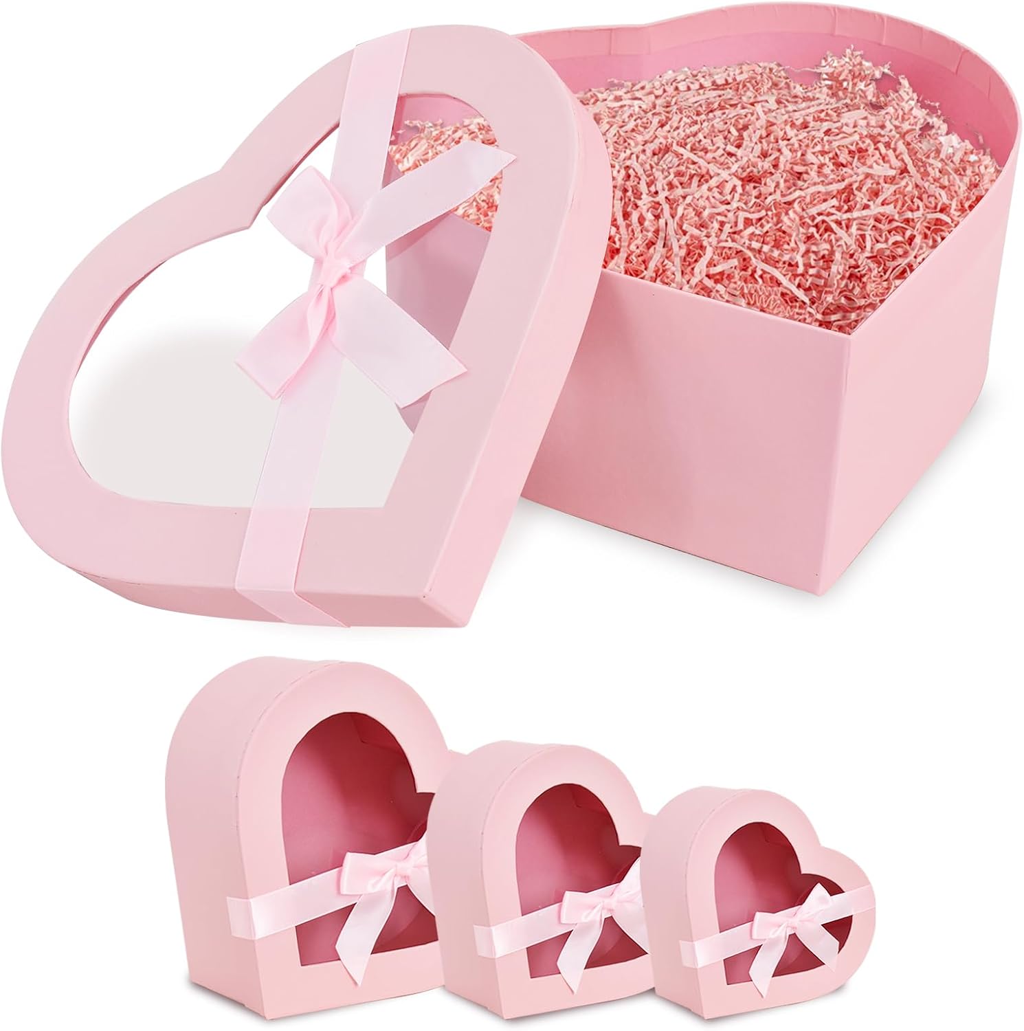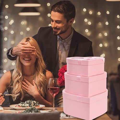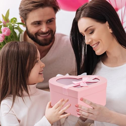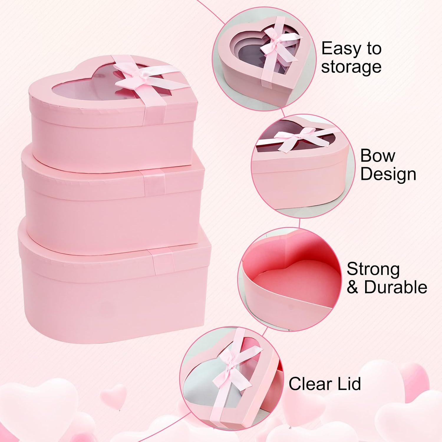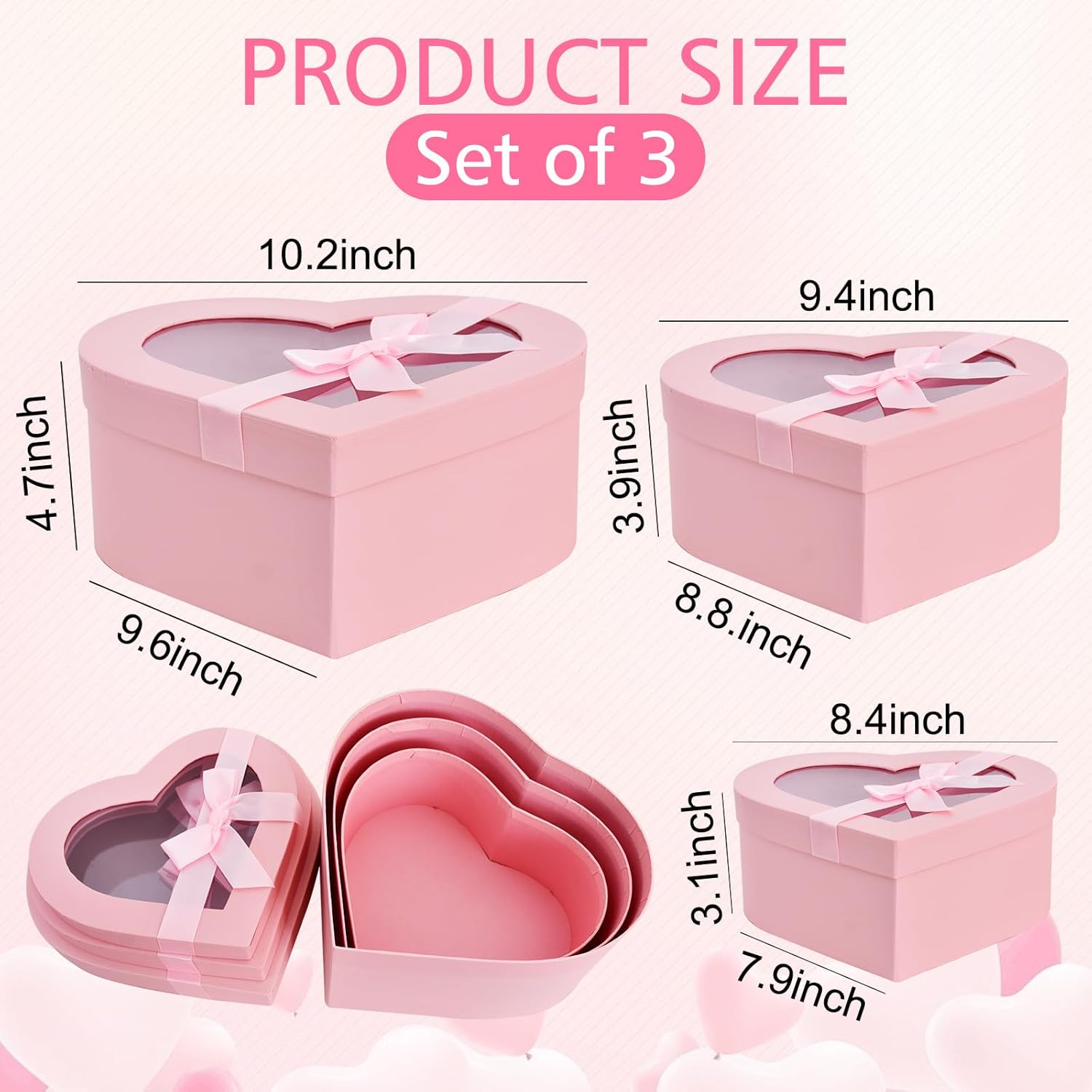 BEISHIDA Set of 3 Mothers Day Heart Shaped Box for Flowers,Chocolate and Strawberries,Mom Gift Box with Clear Lids for Presnet Flowers -Pink