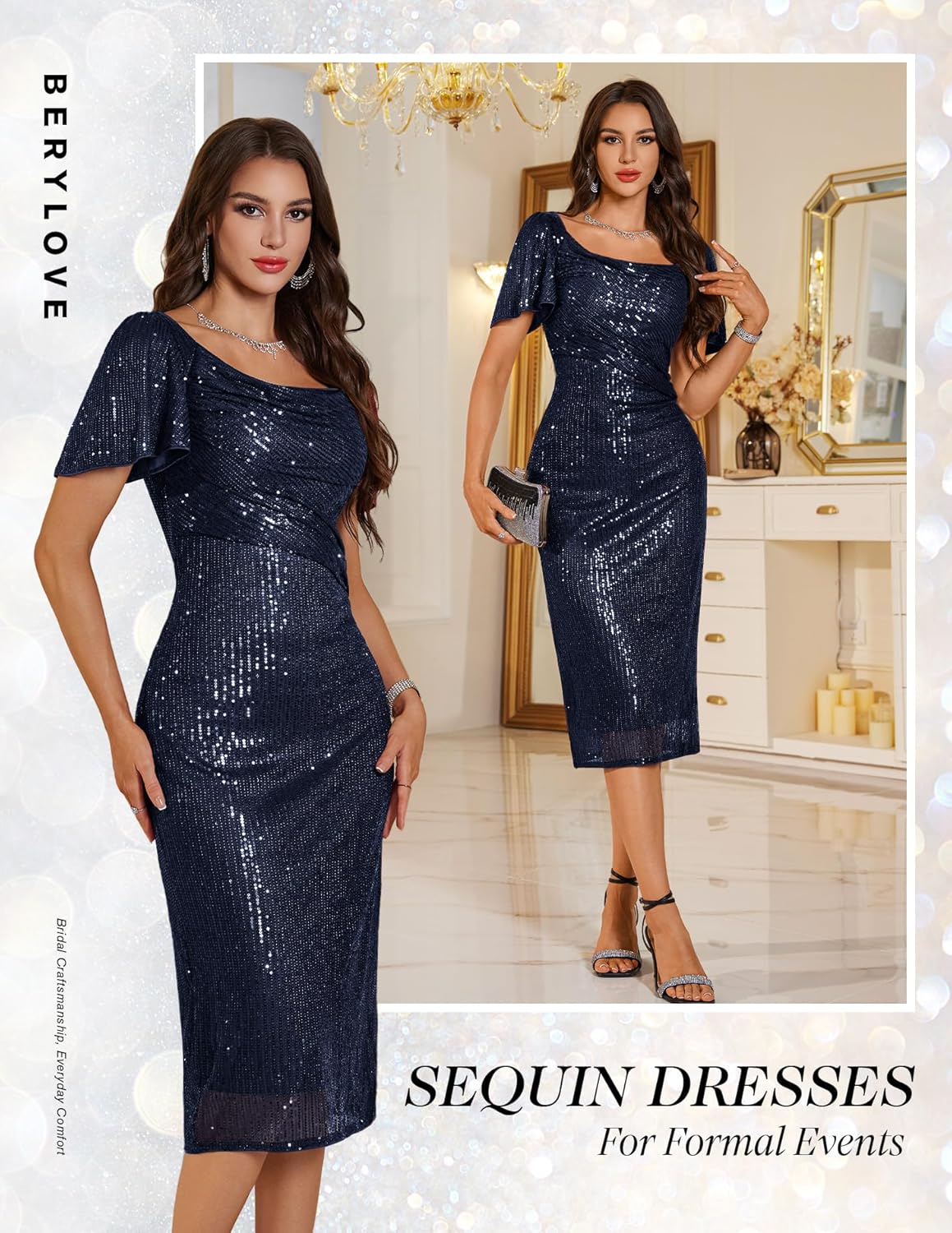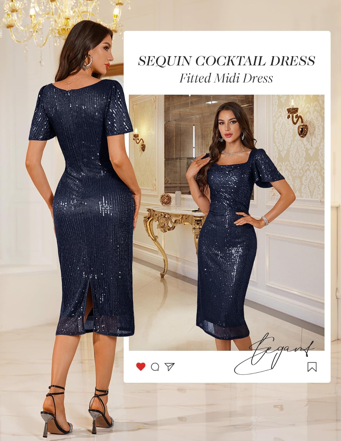 - Style: This 2025 Sequin Midi Dress is all about glamour and shine. Style it with strappy high heels and delicate jewelry to elevate your look for evening parties or cocktail events. A clutch bag and bold lipstick complete the outfit, making you the center of attention wherever you go.