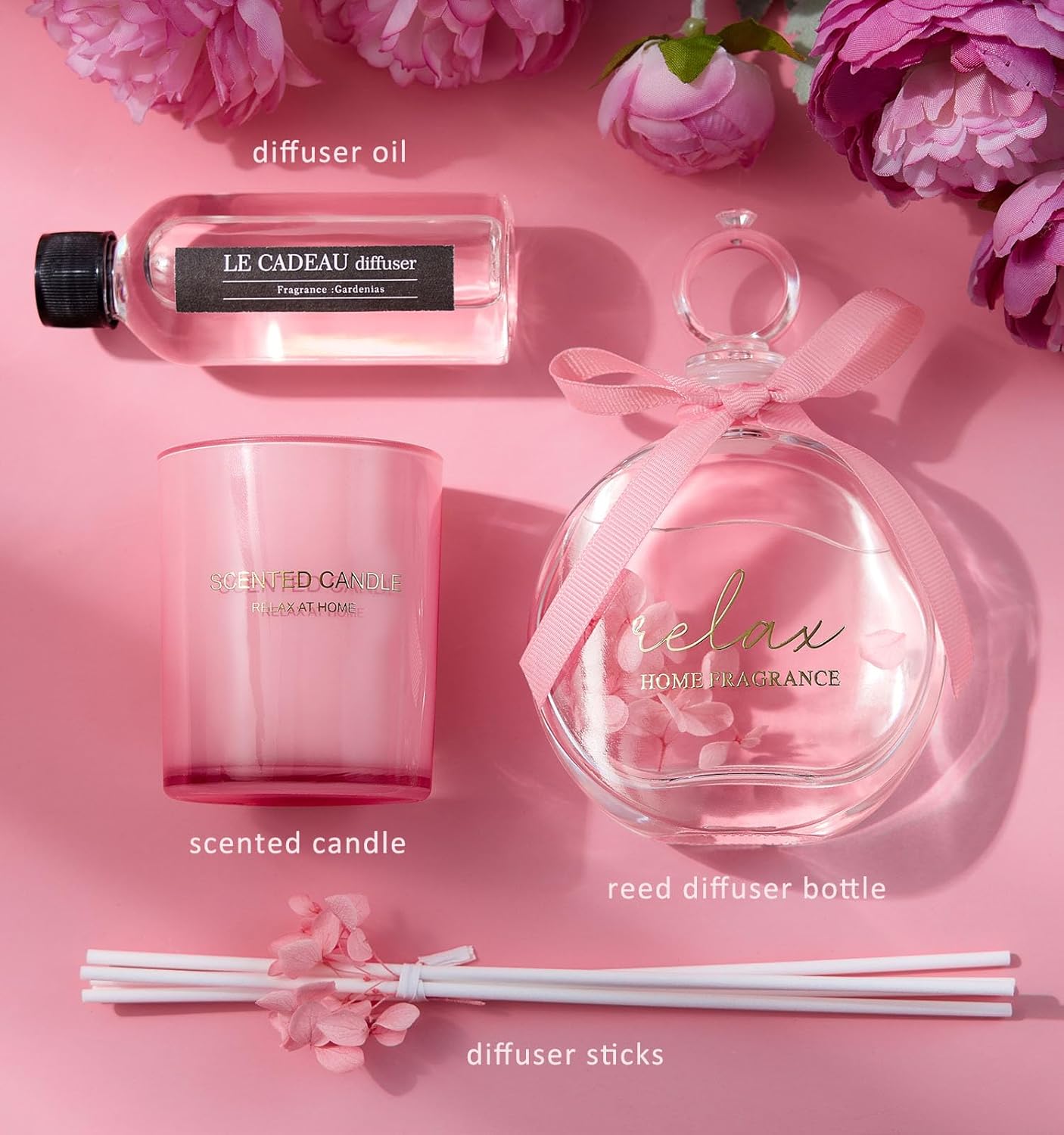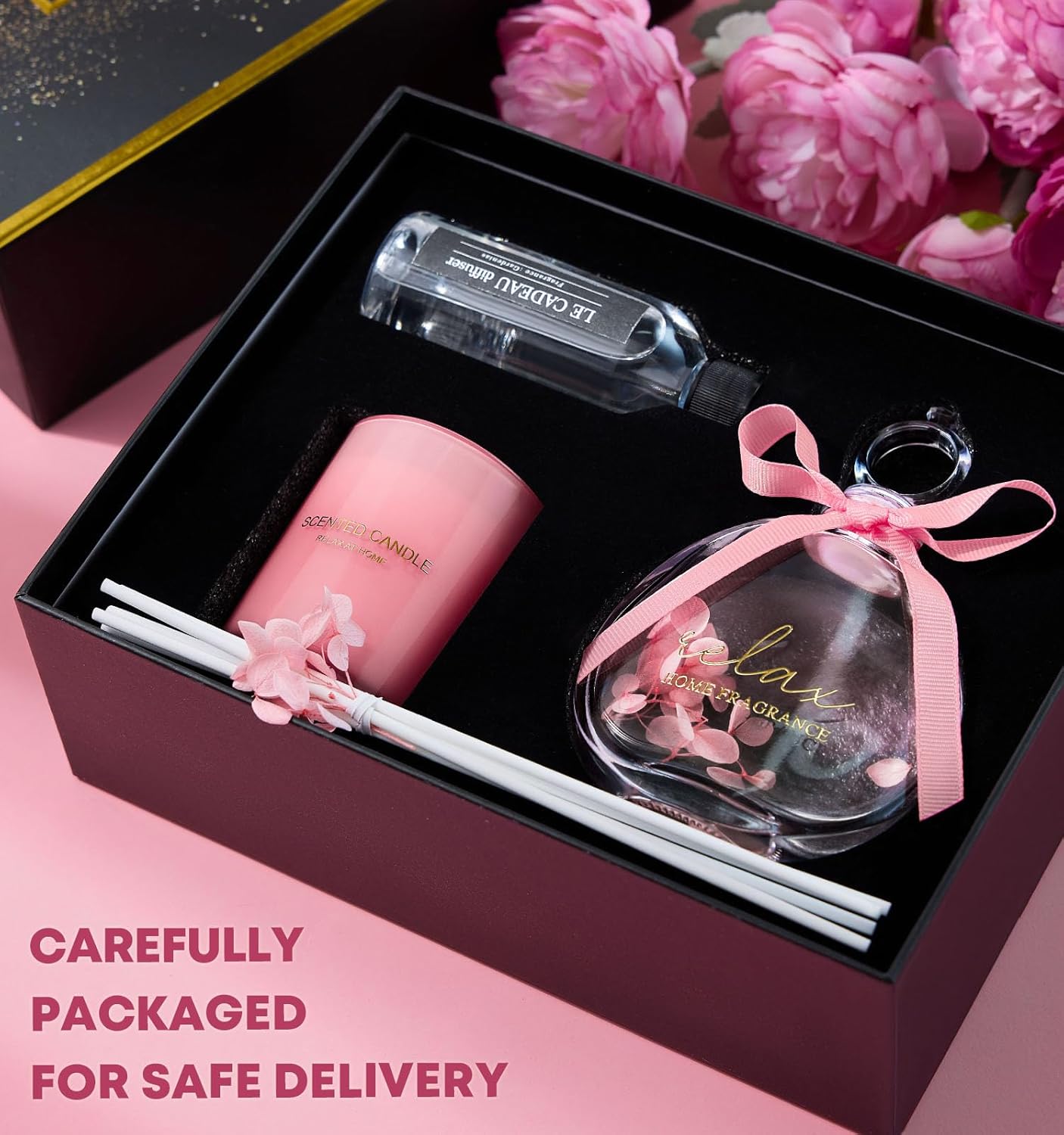 The LE CADEAU Rose Scented Candle Reed Diffuser Gift Set is the ultimate expression of luxury and care, designed to make your loved one feel special. Whether you’re searching for Christmas gifts for her, birthday gifts for women, Valentine’s Day gifts, or Mothers Day gifts, this set is sure to impress. This thoughtfully curated gift set includes a rose-scented candle made from soy wax for a clean burn with no black smoke. The soothing fragrance fills her home with a romantic and calming aroma, creating the perfect setting for relaxation. The candles elegant design and long-lasting fragrance make it an ideal choice for self-care gifts and spa gift baskets. Accompanying the candle is a rose-scented reed diffuser with an exclusive bottle design, featuring a lid shaped like a diamond ring. This unique touch adds an extra layer of luxury and makes the diffuser not just a functional item, but a decorative piece for any home. The pink flower petals floating in the diffuser further enhance its visual appeal, creating a serene and stylish atmosphere. This set is perfect for Christmas gifts for mom, birthday gifts for her, or as a Valentines Day gift for your wife or girlfriend. Its elegant and timeless design, combined with the luxurious fragrance, makes it a perfect choice for any occasion where you want to show love and appreciation. Ideal Christmas gifts for best friends, mom, sisters, best friends, wife, girlfriends, teachers, or coworkers – a wonderful way to make any woman feel cherished and appreciated. Indulge the women in your life with the LE CADEAU Rose Scented Candle Reed Diffuser Gift Set and bring a little luxury and relaxation into their world. Perfect for birthdays, Christmas celebrations, or just because, this gift set is sure to leave a lasting impression.