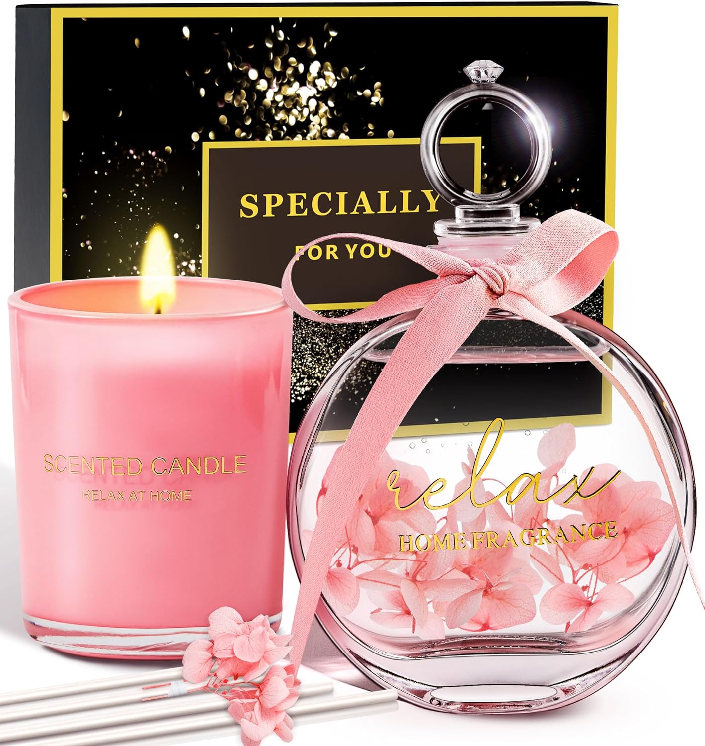 - Luxurious Rose Scented Ambiance: Infused with a captivating rose fragrance, this set creates a calming and romantic atmosphere. Perfect for Mother’s Day, Valentine’s Day, or simply as a thoughtful thank you gift for women, this set elevates any home with a gentle, soothing aroma