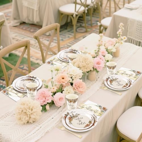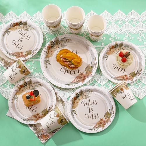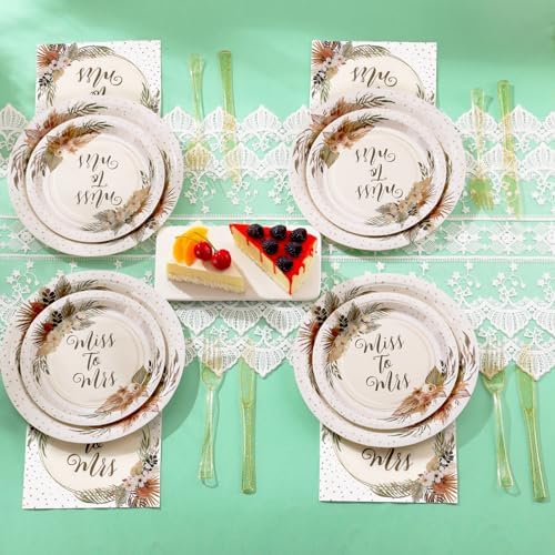 - 【Boho Bridal Shower Decorations】- This bridal shower plates and napkins sets features bohemian style pampas flowers and a “Miss to Mrs” polka dot pattern. Bohemian meets natural style to create a beautiful summer fall bridal shower decorations, love is in bloom bridal shower decorations, love is brewing bridal shower decorations, floral bridal shower decorations, miss to mrs decorations, farmers market bridal shower.