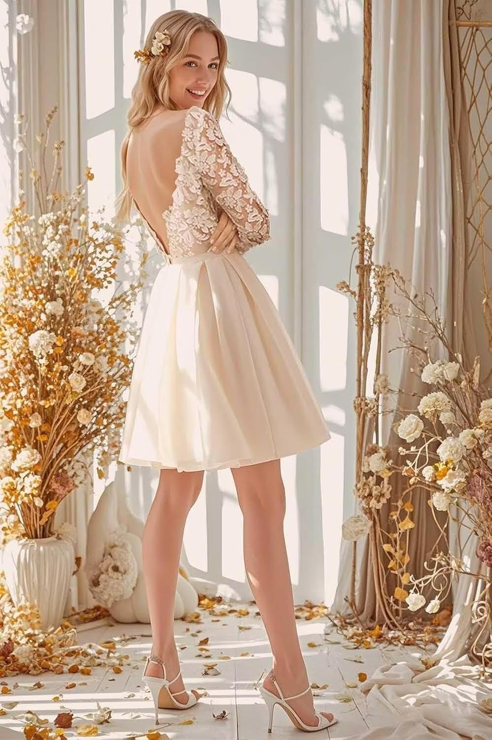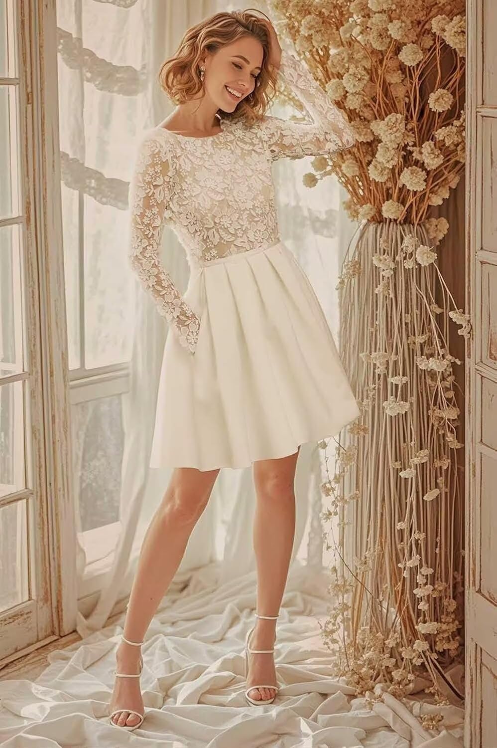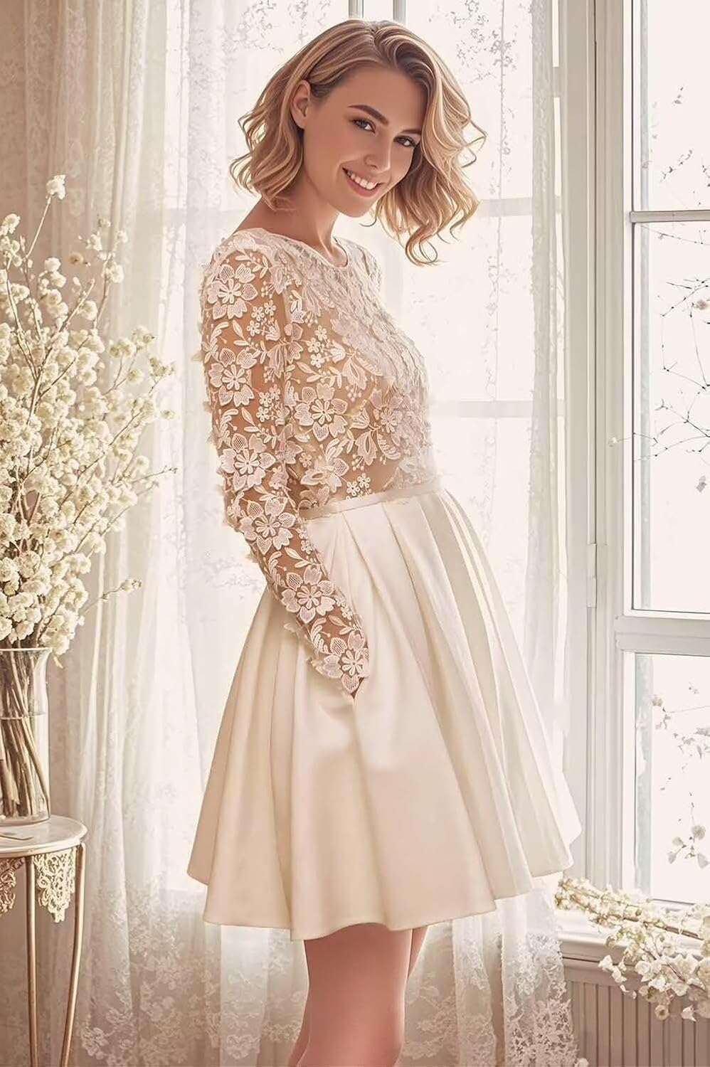 - Features: This short wedding dresses for women 2025 features scoop neck ,long sleeve,a line ball gown, lace applique, you will receive many compliments on this beautiful wedding dress with sleeve!