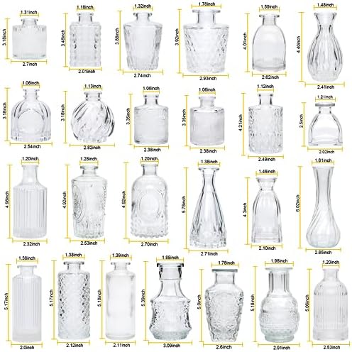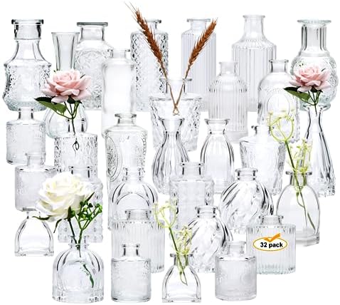 • VINTAGE DESIGN:You get 32 glass bud vase, Small glass vases are very classy and can be used in any environment, from elegant to simple and casual. They will become a beautiful decorative center on your window sill, dining table or wedding reception table.