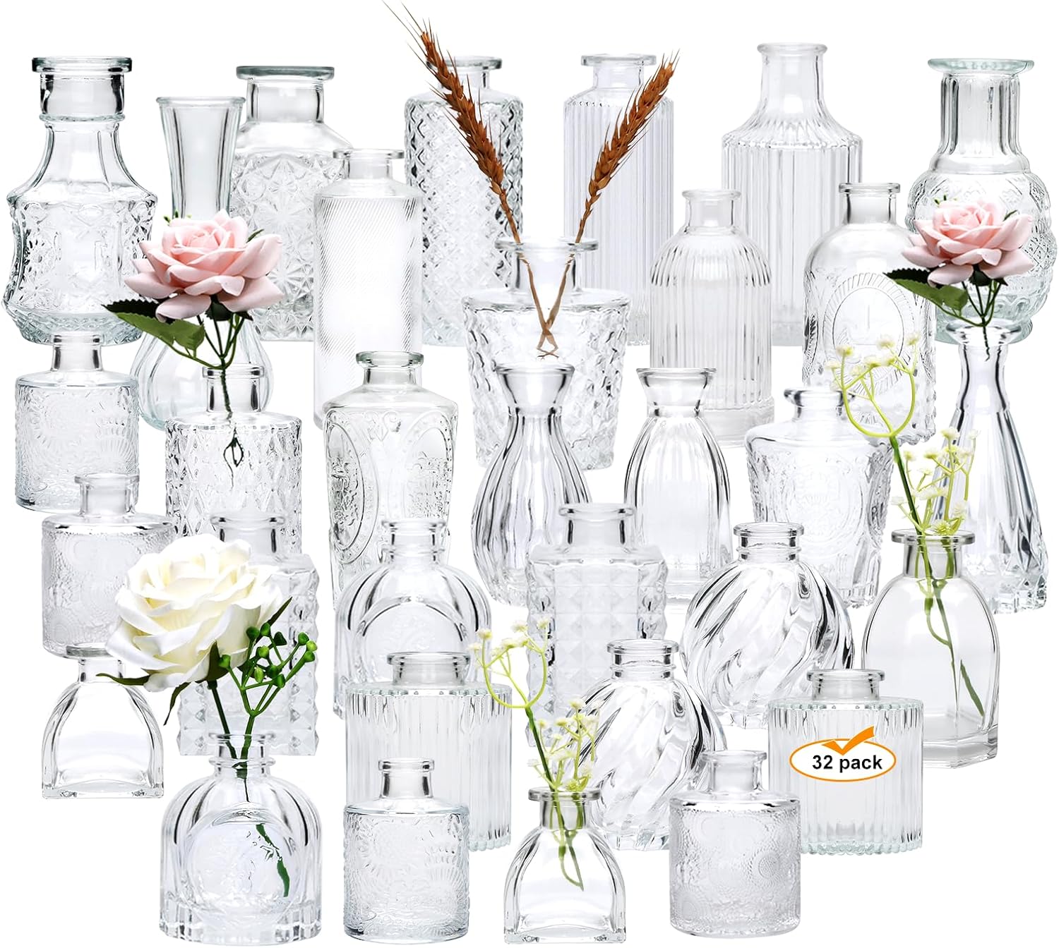 Brajttt Glass Bud Vase Set of 32 pcs,Bud Vases in Bulk,Small Vases for Centerpieces, Mini Flower Vase Bulk for Rustic Wedding Home Table Decorations