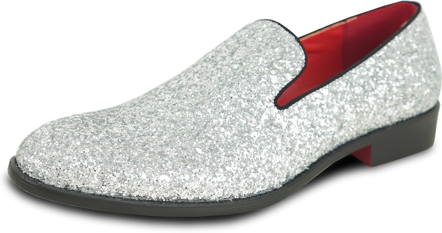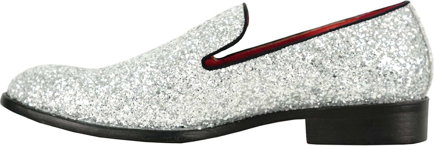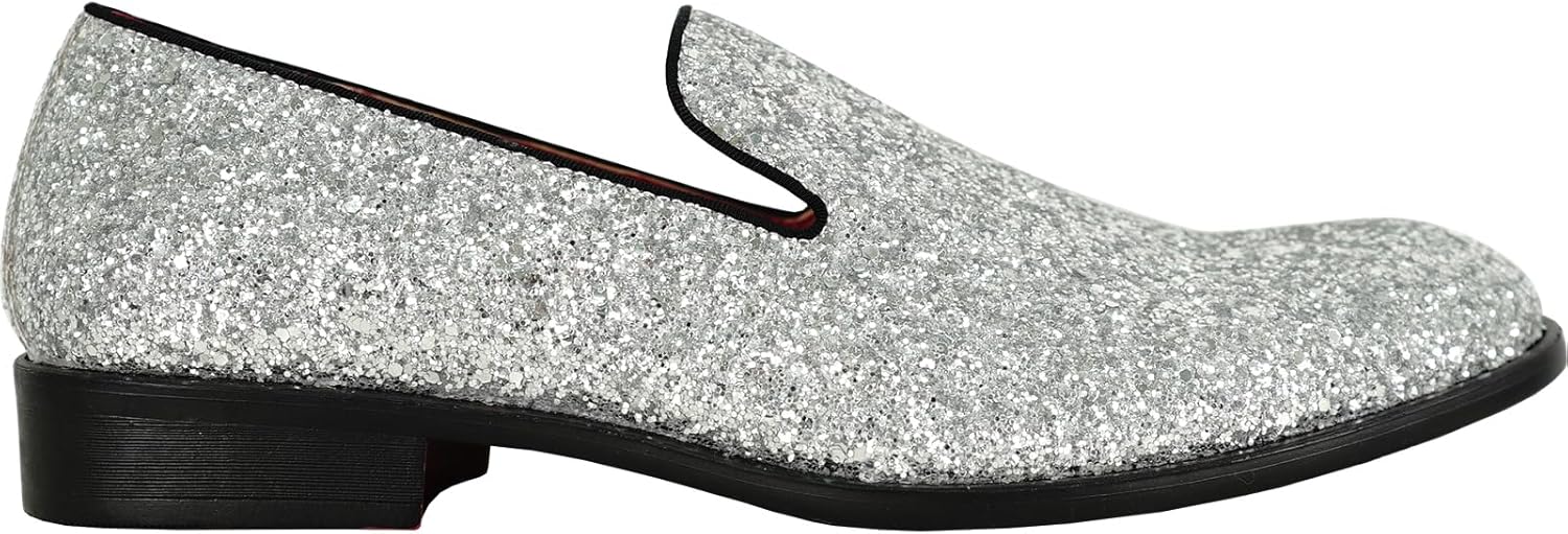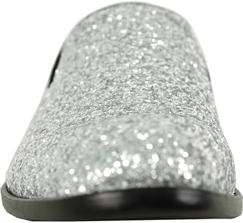 Brilliant All-Over Glitter Effect with these Classic Dress Styles from bravo! A Classic Fashion Dress Smoke Loafer Style with Various Pop Element Details Catch the Light the Way You Turn and Attract All Eyes on You. Premium Fully Lined Interior and Full-Length EVA Cushioned Footbed Keeps Your Feet Comfort of Walking and Dancing. Durable Rubber Outsole. Heel Measures Approximately 1.25 Inch. Full Size Range from 7 to 14 Medium Width. Perfectly for Prom, Wedding, Formal, Party and Any Occasions.