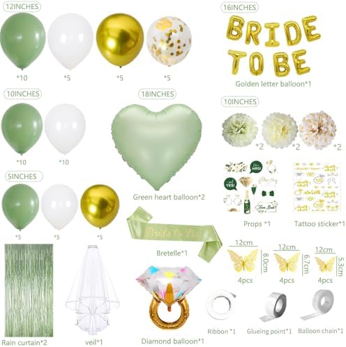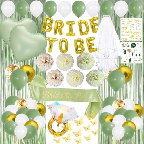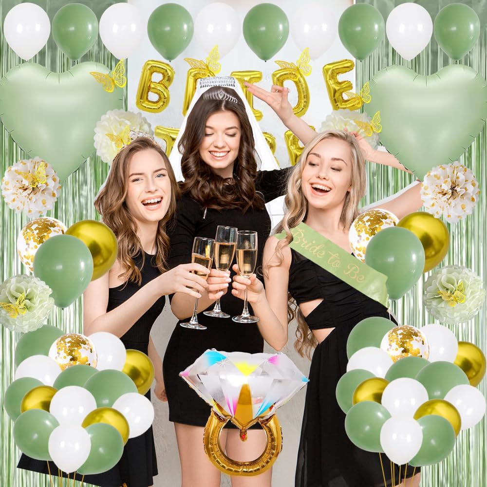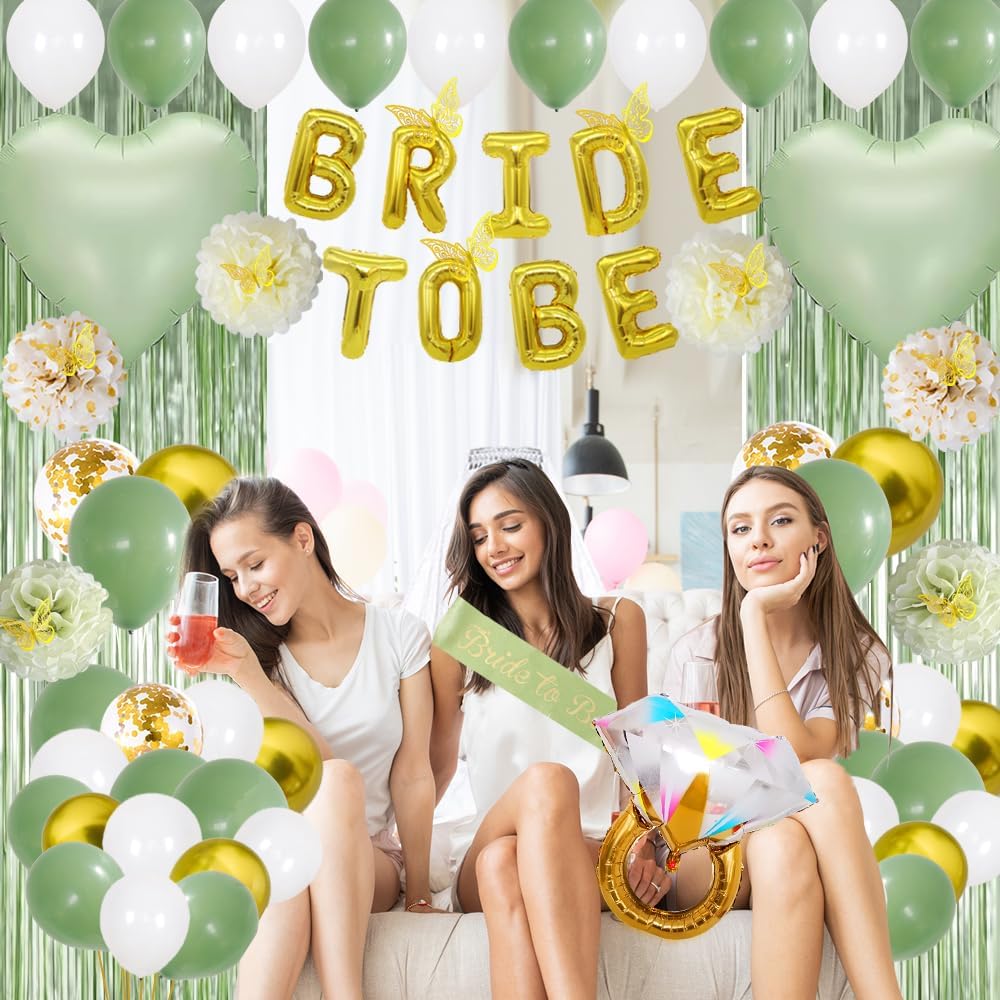 Bridal Shower Decorations,Bachelorette Party Decorations,Bride to Be Bridal Shower with Balloons,Bridal Veil Sash Fringe Curtain for Bachelorette Party favors (Green)