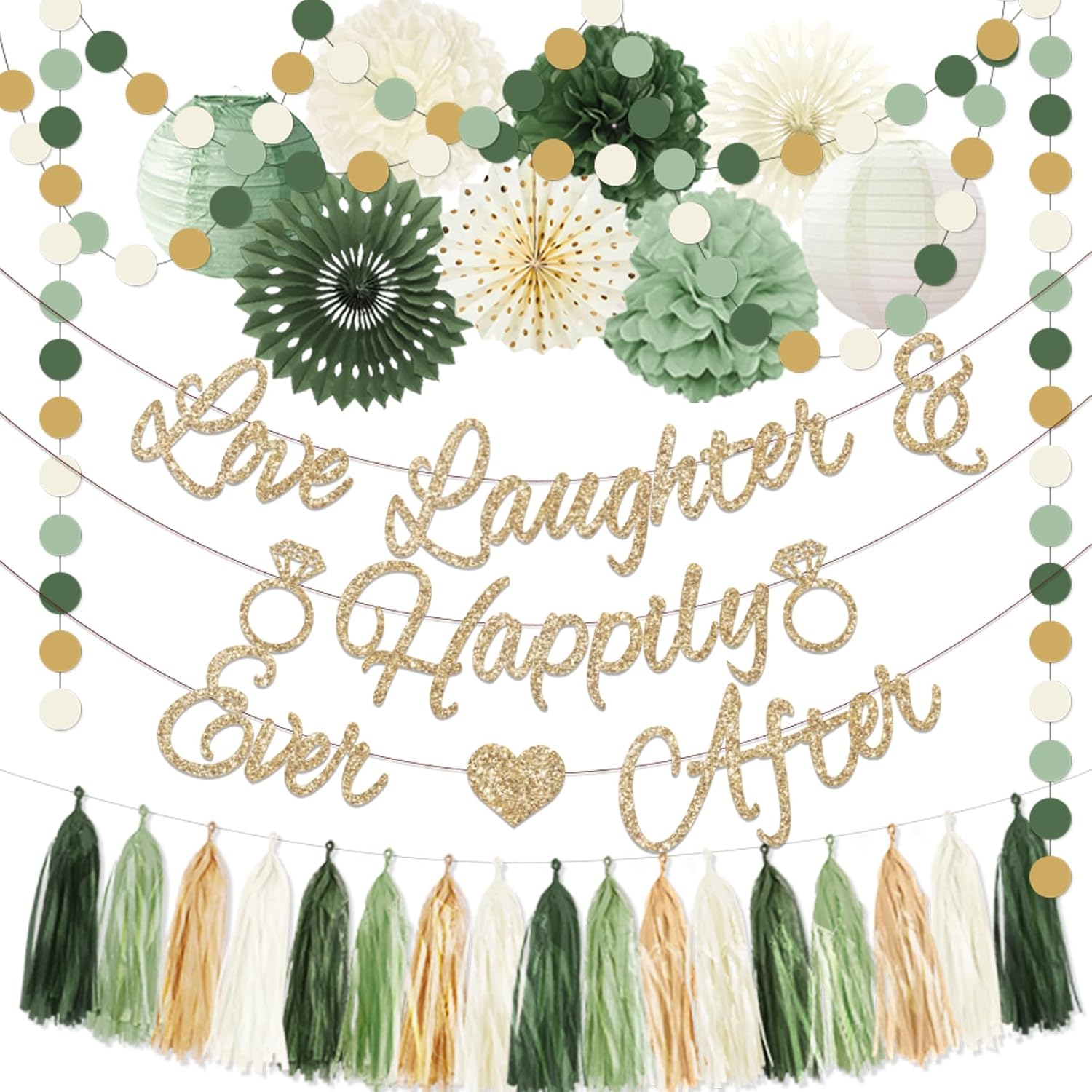 - 【PACKAGE INCLUDES】 Bachelorette party accessories includes: 1pc Love Laughter happily ever after banner,1pc color dots banner, 20pcs bridal shower decor paper tassel(5pcs of each color) ,6pcs bride decor paper flower ball in 8 inches(2pcs of each color),2pcs paper lanterns in 8 inches,6pcs paper fan in 12 inches.our bachelorette decorations are enough to decorate your party