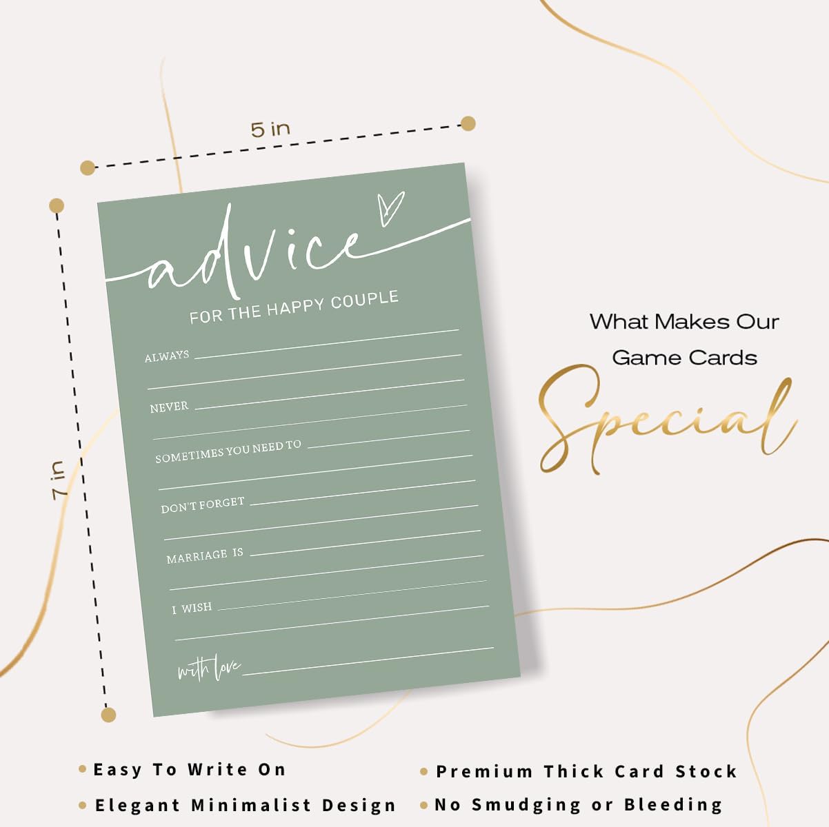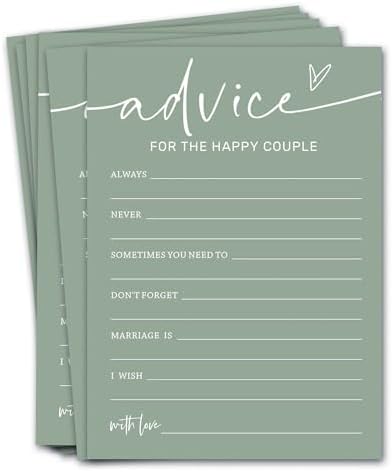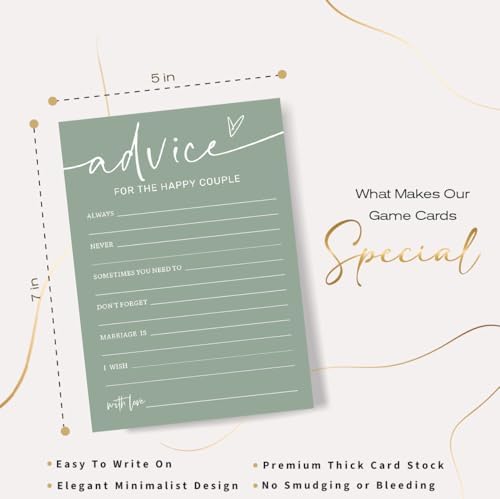 Bridal Shower Games Cards, Advice for The Happy Couple, Bridal Shower Game 25 Guests, Engagement Party Wedding Games for Guests, Minimalist Green Wedding Party Supplies – C10