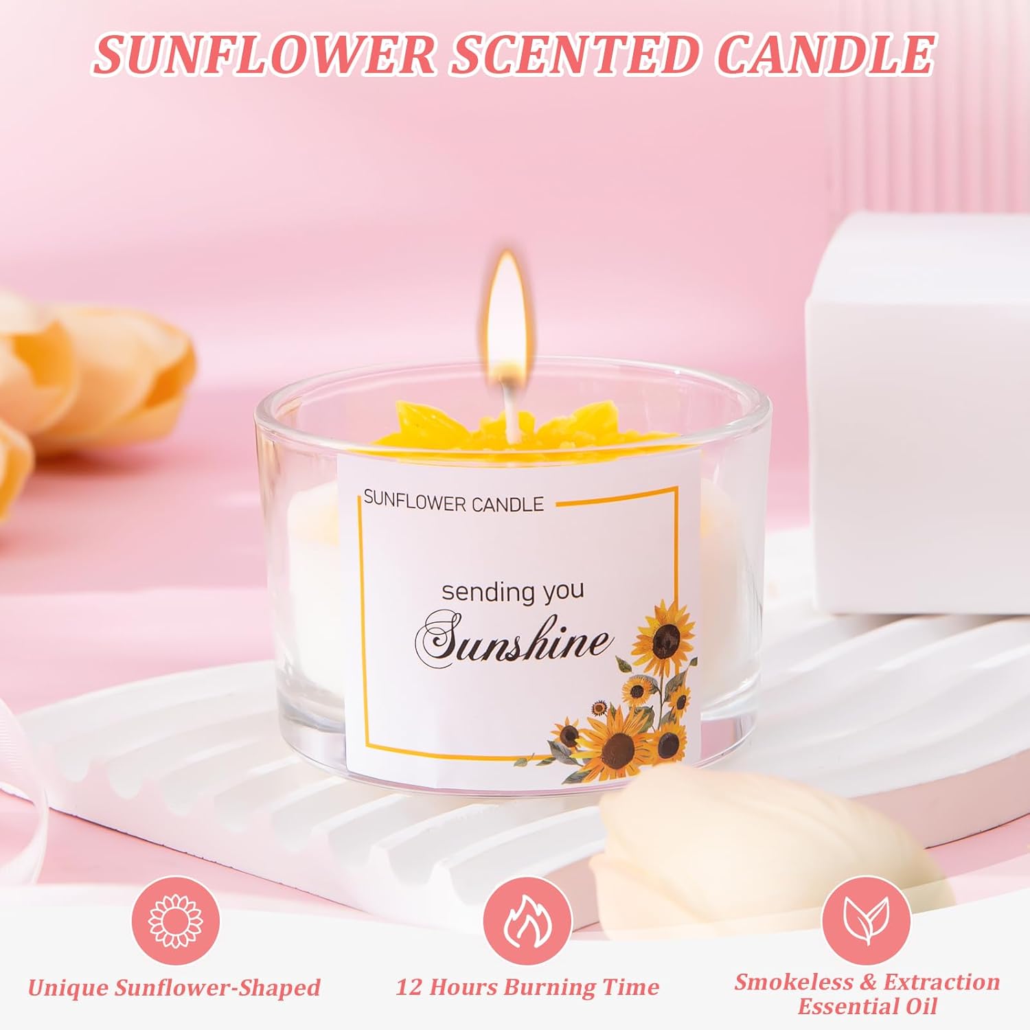 - 【Sunflower Scented Candle】The sunflower-shaped candle symbolizes sunshine, loyalty, and happiness, making it a thoughtful and meaningful gift. Not only is it a functional item, but it also conveys well-wishes for the bride’s future marriage, representing warmth and bliss—an ideal complement to the bride’s special day.