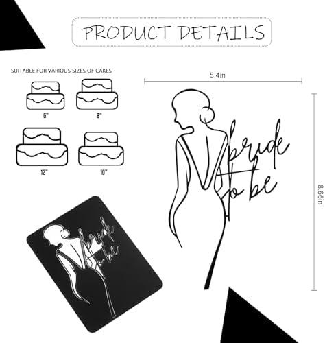 PRODUCT INFORMATION -Simplicity wedding cake topper features Bride silhouette with beautiful detail..Surprise Your wedding Party!! perfect for wedding engagement theme party, bridal shower theme party. your cake will be look exquisite and elegant. -Suitable for many occasions : Bridal Shower Decor, Bridal Cake Topper, wedding, Wedding Cake Topper, perfect for decorating cupcake cake dessert or other pastry.and you can also use them for ice cream, fruits, and other desserts. -PACKAGING and Material:Made of Food Safe Acrylic.Cake Toppers Can Be Reused and Hand washed. Cake topper comes with a cardboard packaging for maximum protection. -Each Cake Topper with double sides coating ,Please remove the protective coating prior to use. -easy to clean and durable. -sturdy, Non-toxic and odorless, Perfect for most cakes. ABOUT PRODUCT ATTRIBUTES AND DIMENSIONS -Size: Approx. 5.9 x7.8 inches, perfect for cakes various sizes .It can be used directly on the cake.you can adjust the inserting depth of it to adjust the height of cake topper. -Tips:This is not edible, only for decorate, please do not use it in the oven or microwave. WE ARE HAPPY TO CUSTOM DESIGN ANYTHING YOU NEED.If you have any questions or suggestions, PLEASE SEND US A MESSAGE!we will try best to serve you. We’d be super excited if you shared some happy photos with us in the comments!