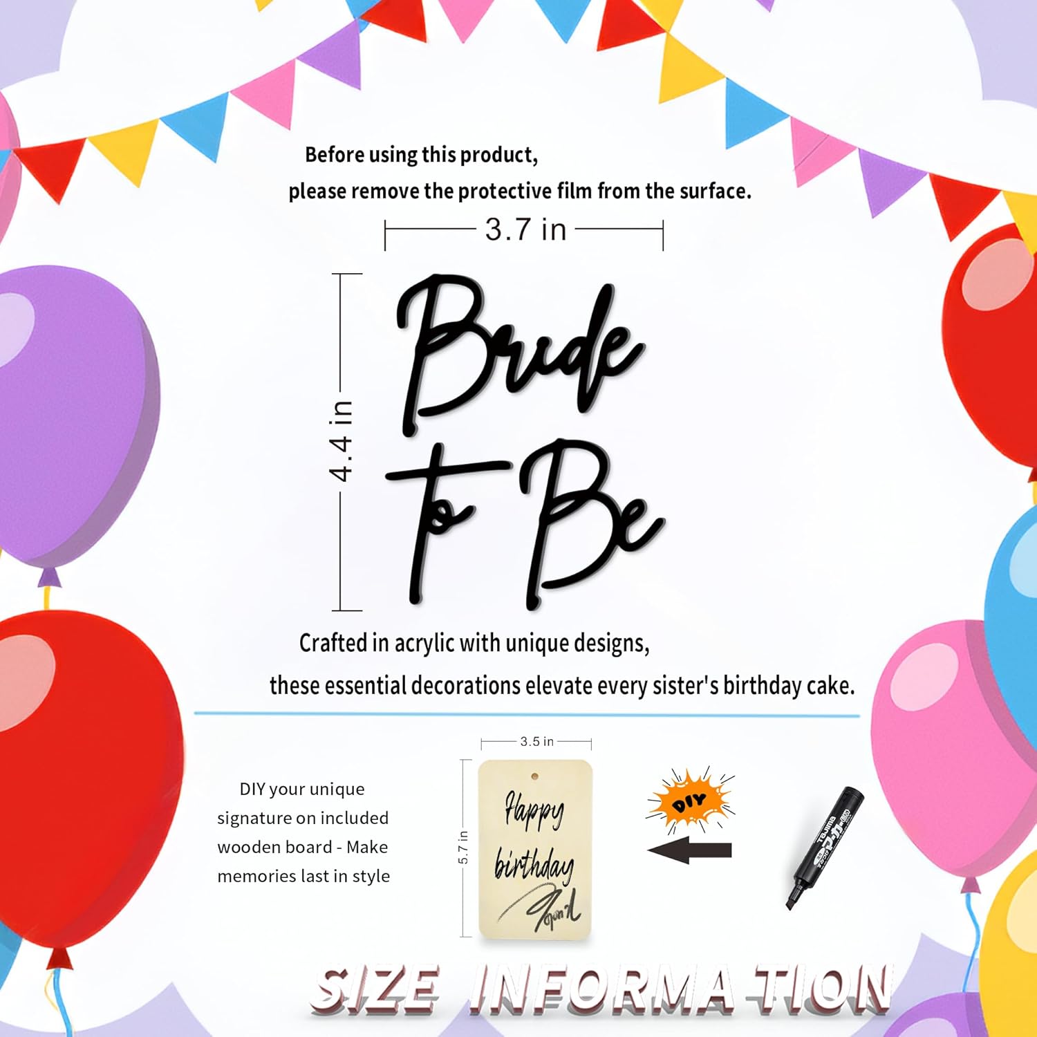 - Please remember to carefully remove the protective film from the acrylic cake charm before use to ensure the best display effect.