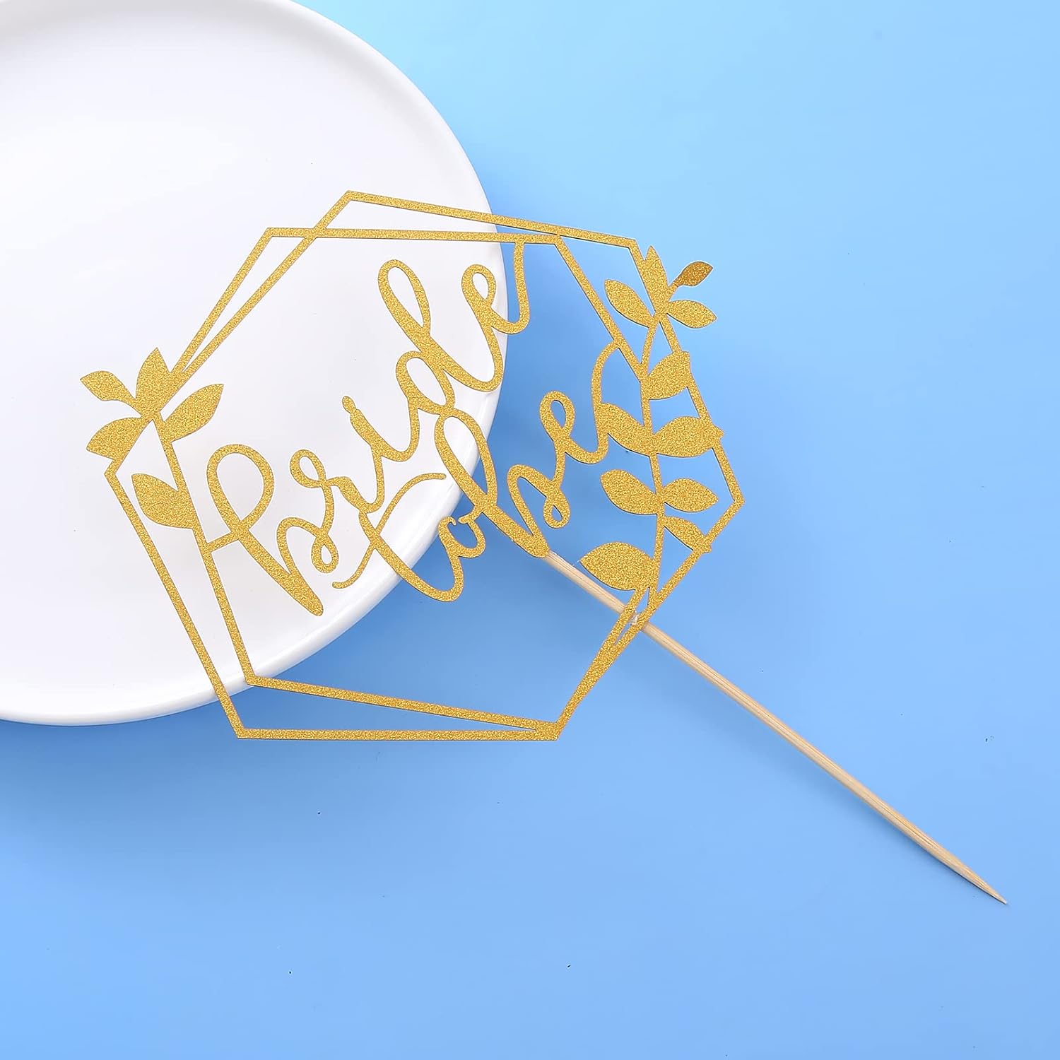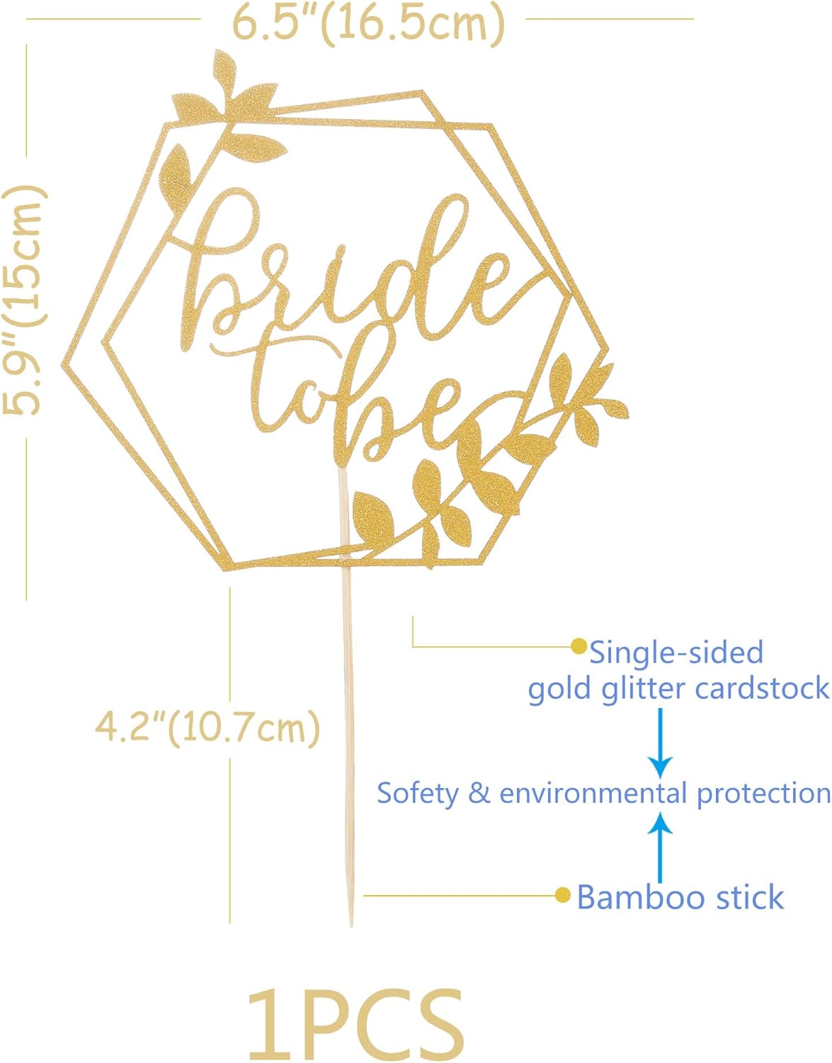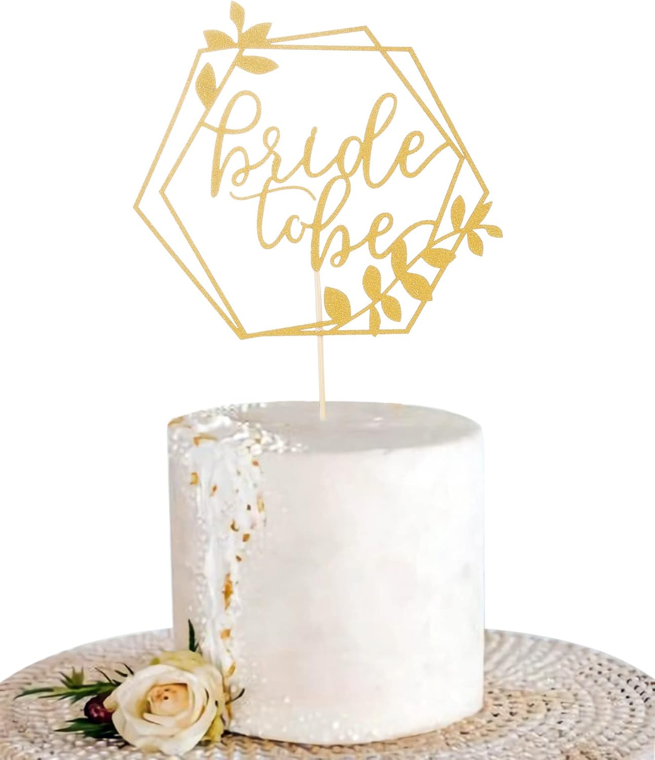 - Bride to Be Cake Topper: Add some sparkle and elegance to your cake with this beautiful hexagonal gold glitter cake topper that reads “Bride to be”
