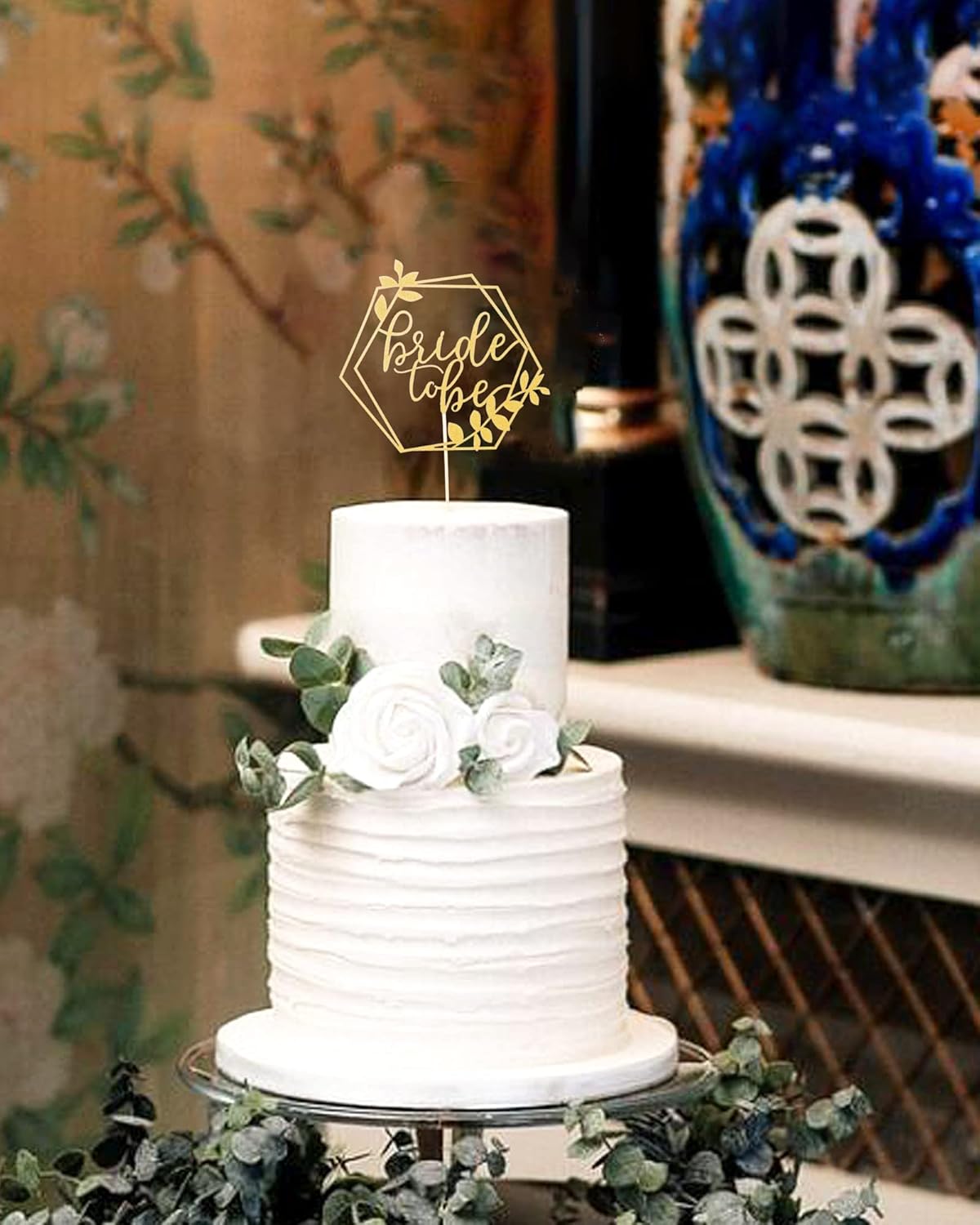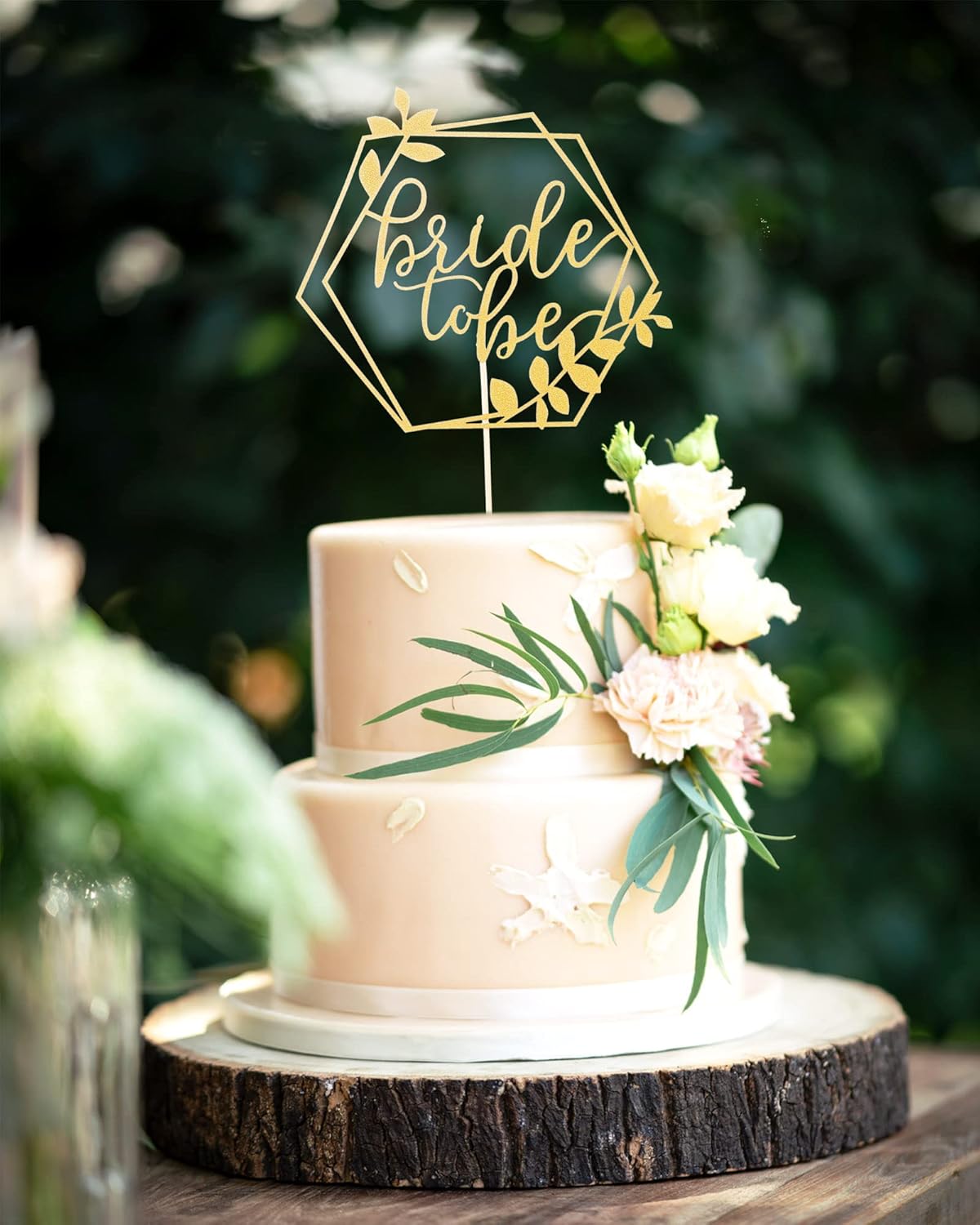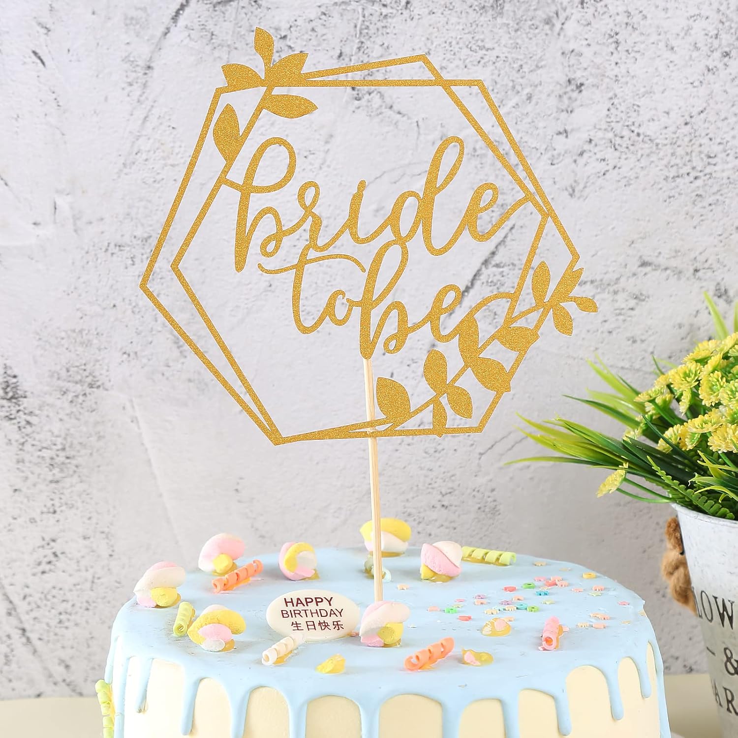 - Bride to Be Cake Topper: Add some sparkle and elegance to your cake with this beautiful hexagonal gold glitter cake topper that reads “Bride to be”
