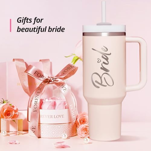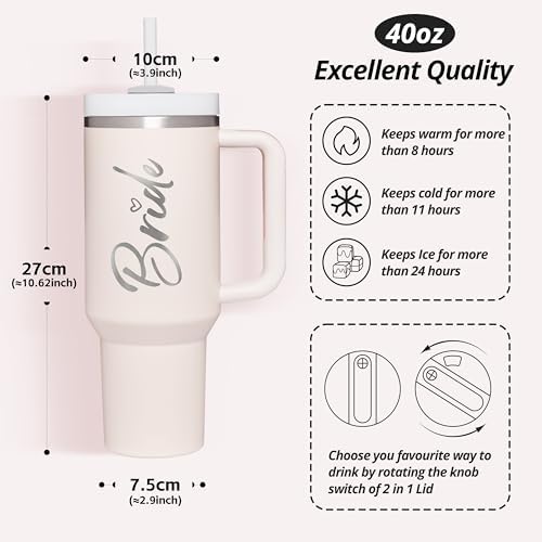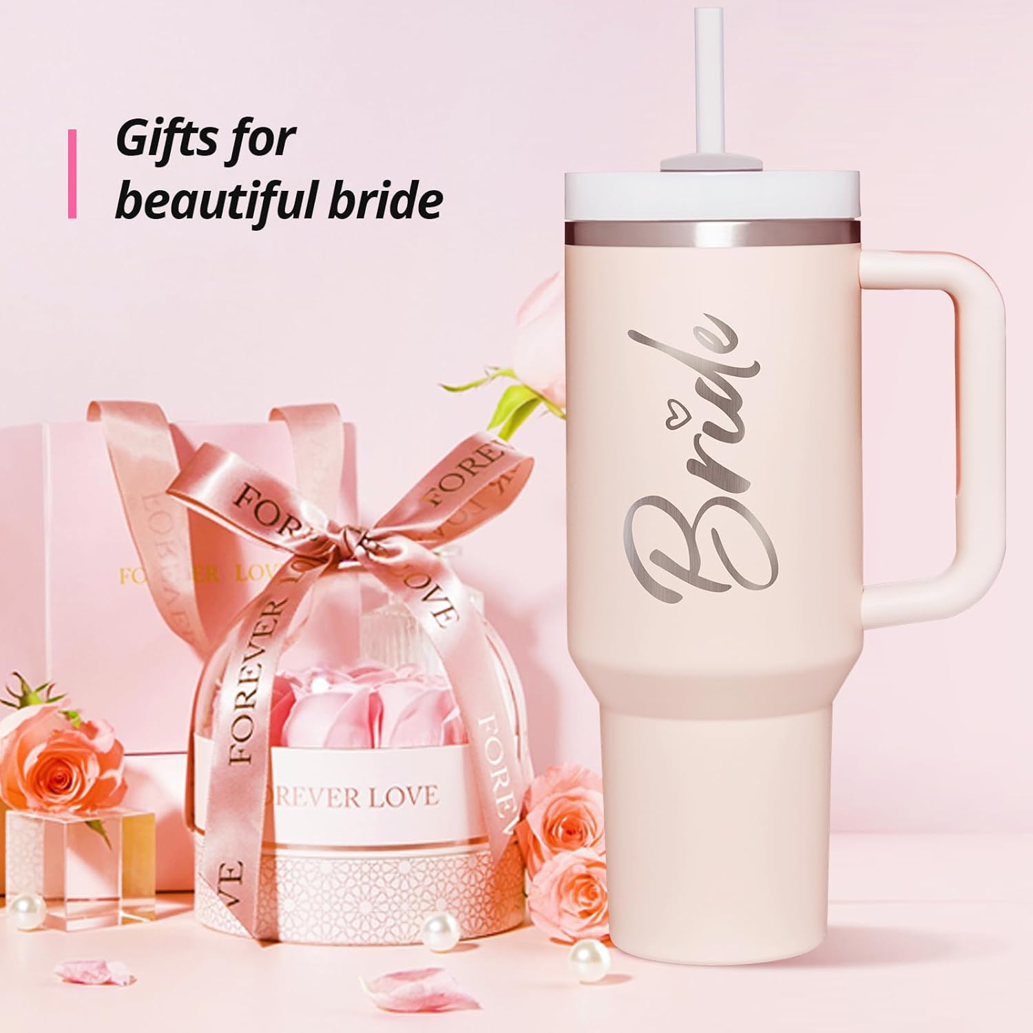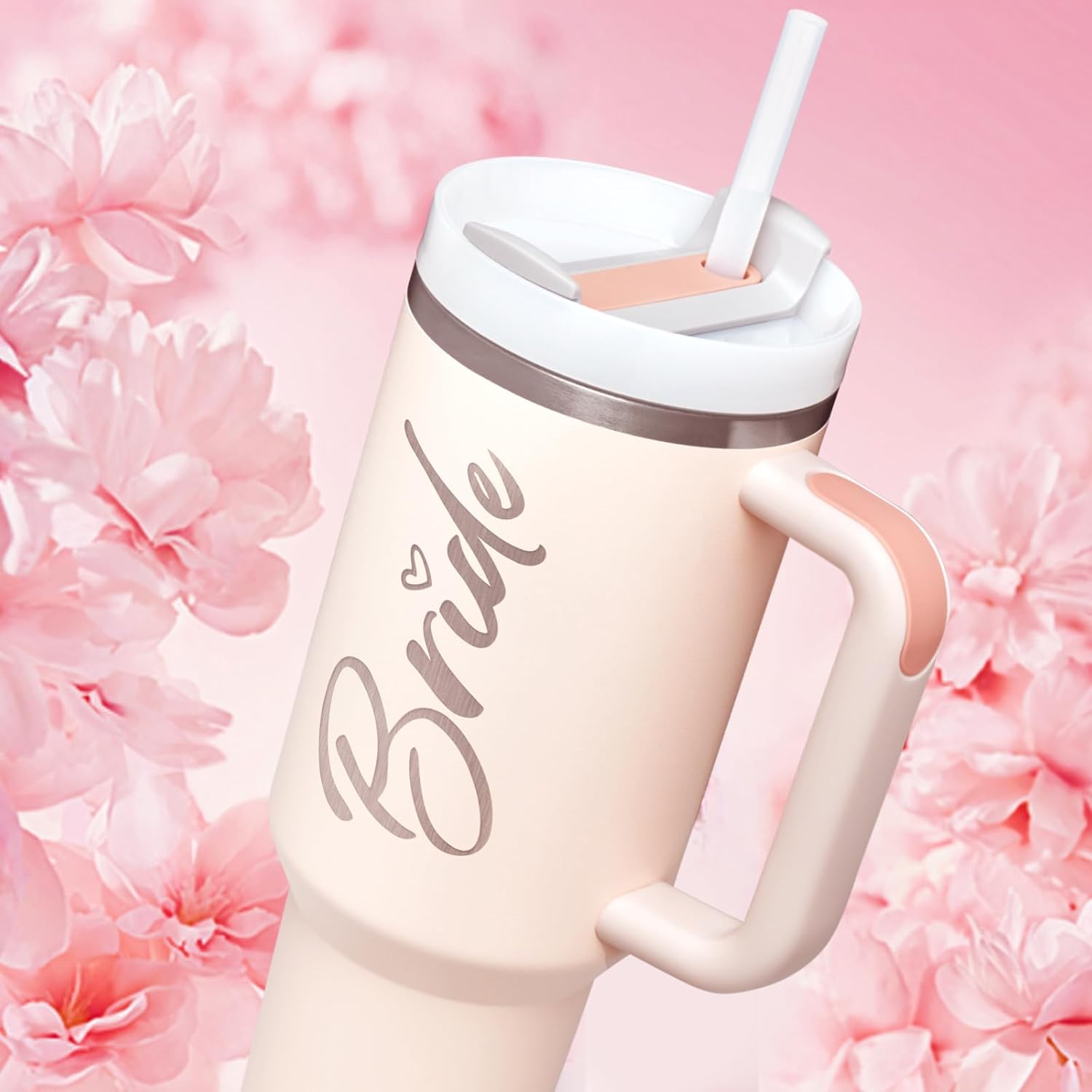 - Bride to be Gift: The 40 oz stainless steel insulated tumbler cup is beautifully designed and laser engraved with the word ‘Bride’ and comes with a handle and straw, making it the perfect bridal shower gifts for bride to