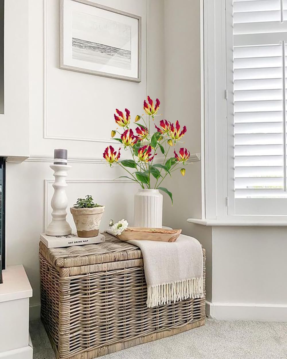 • LONG-LASTING FRESH AND VIBRANT: Unlike fresh flame lily flower blooms that have a limited lifespan, faux flower stems retain their vibrant appearance indefinitely. You can enjoy their beauty for an extended time without worrying about wilting or withering.
