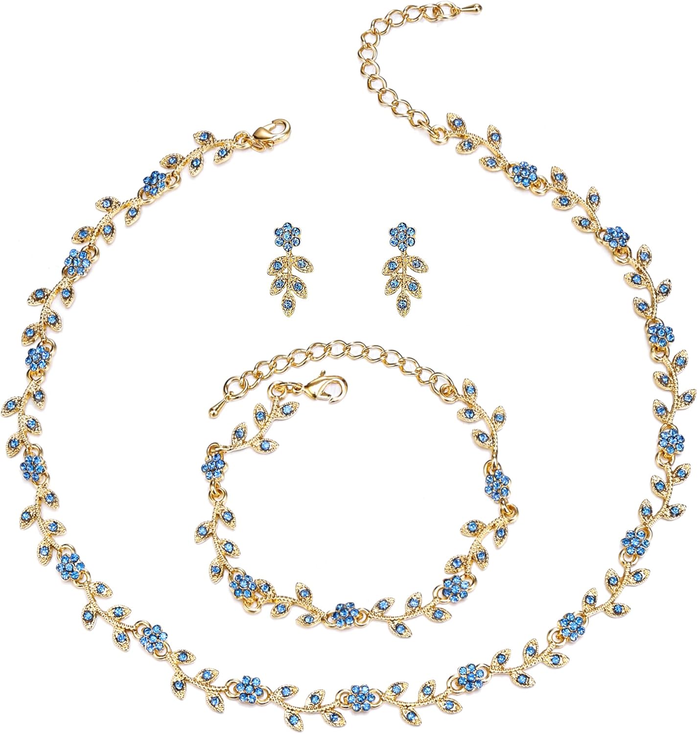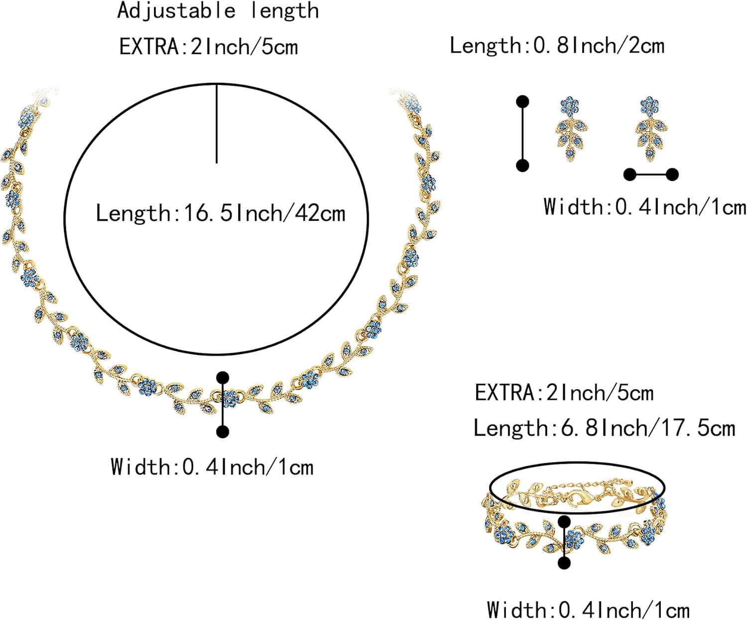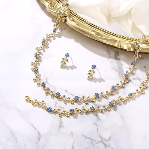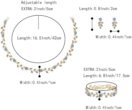 BriLove Wedding Jewelry Set for Women Bride, Gorgeous Stunning Crystal Flower Leaf Cluster Choker Necklace Link Bracelet Stud Earrings Bridal Bridesmaid