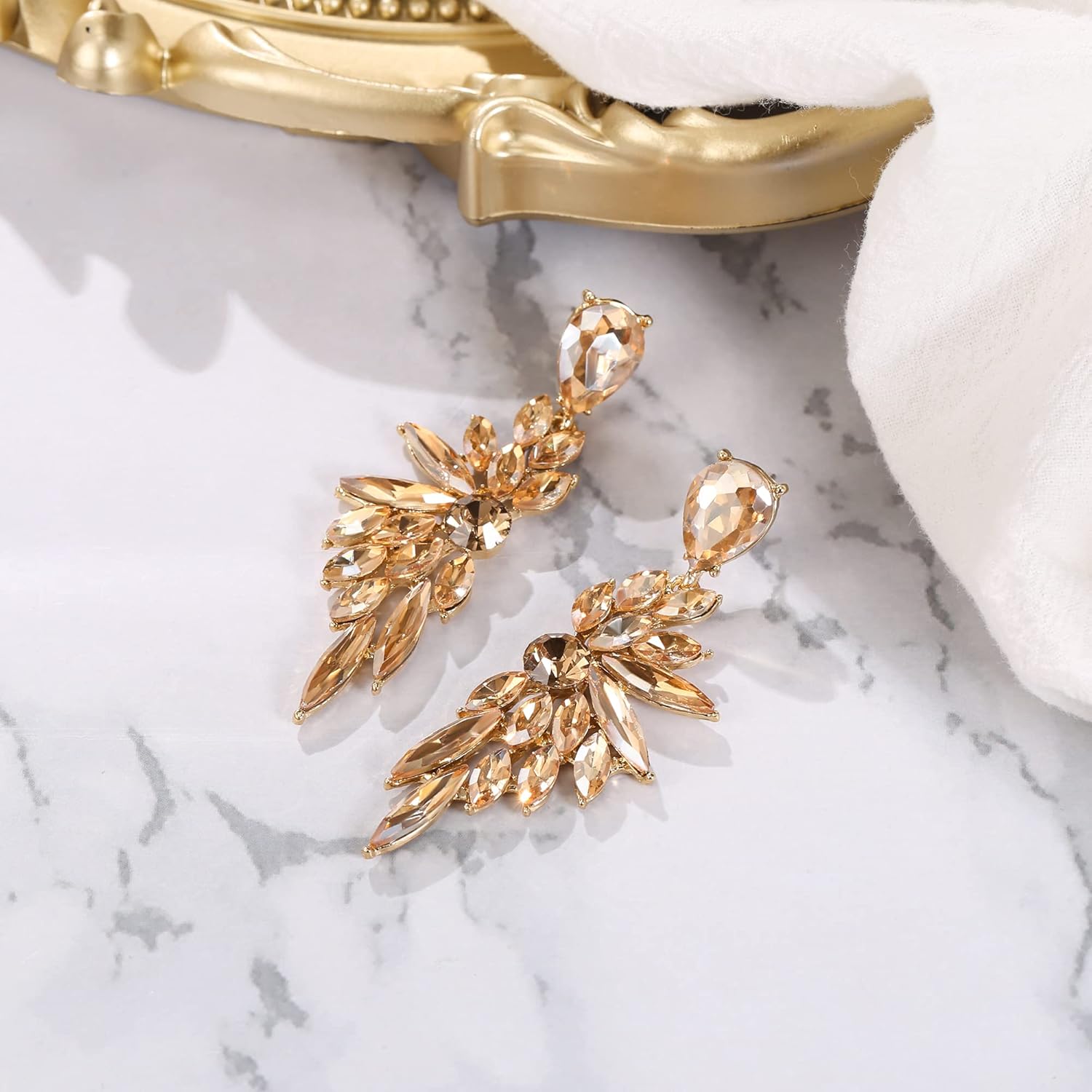 - Material: Bridal earrings for wedding. The classic and elegant always keep pace with fashion,which will make a timeless accessory to any jewelry collection. Adorned with selected Austrian Crystal, crafted with eco-friendly Zinc alloy, Lead-Free and Nickel-Free, this special design is born to match the clothes and your unique beauty.