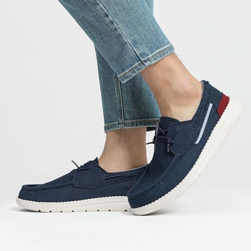 - Trendy Design: Moc toe, fabric lining and the lacing around heel bring boat shoes style. Slip-on design makes it easy to take on and off. You can adjust the elastic shoelaces and knot the lace for a better fit.