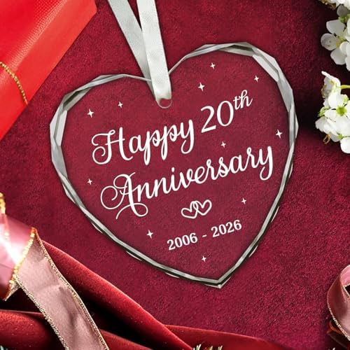 • Happy 20th Anniversary: This heart-shaped glass ornament is a sweet way to celebrate twenty years together. A small keepsake that reminds a couple of the love and memories built over 20 years.