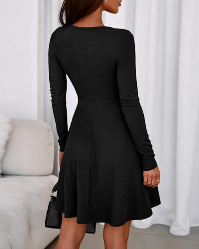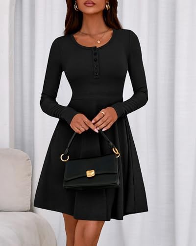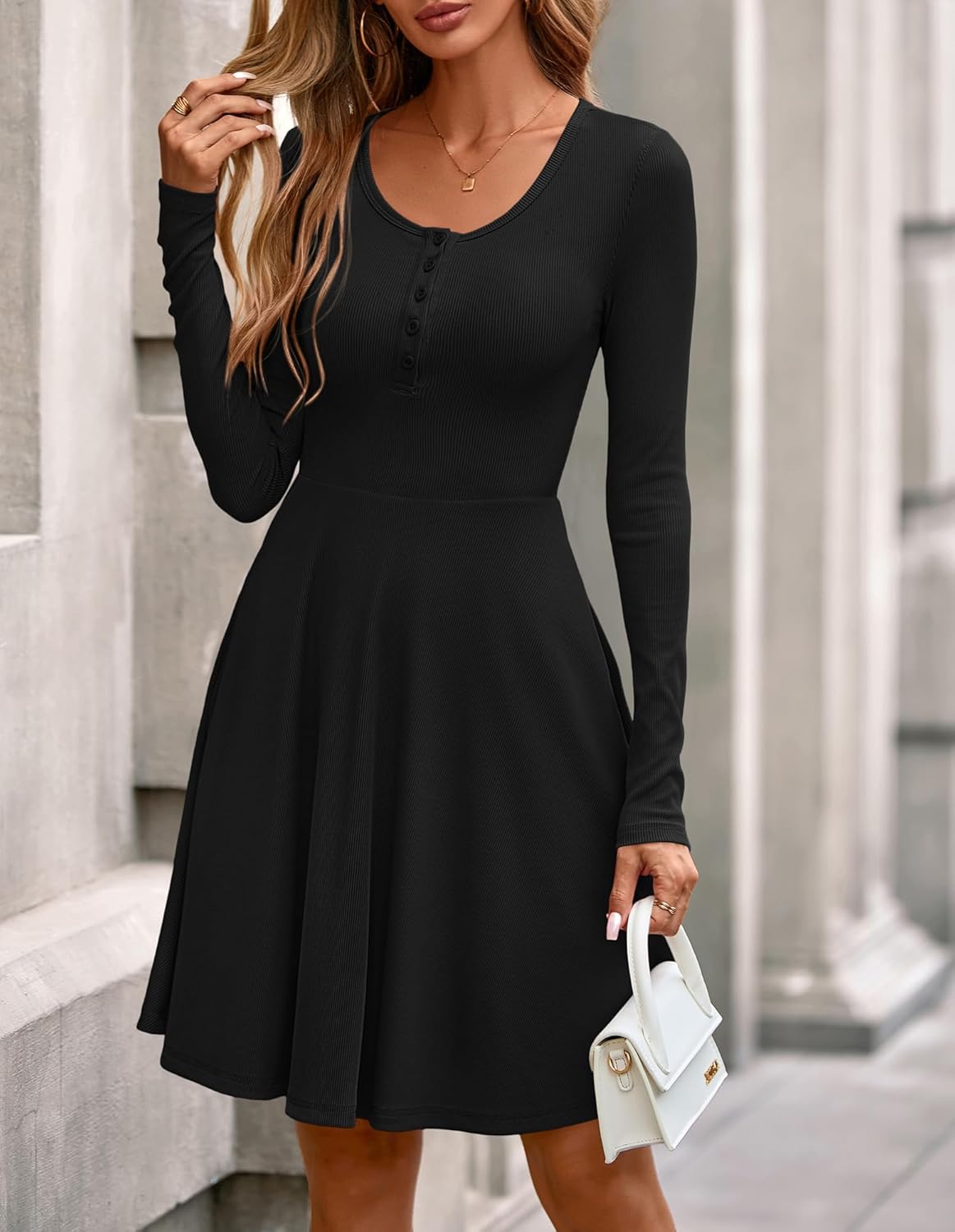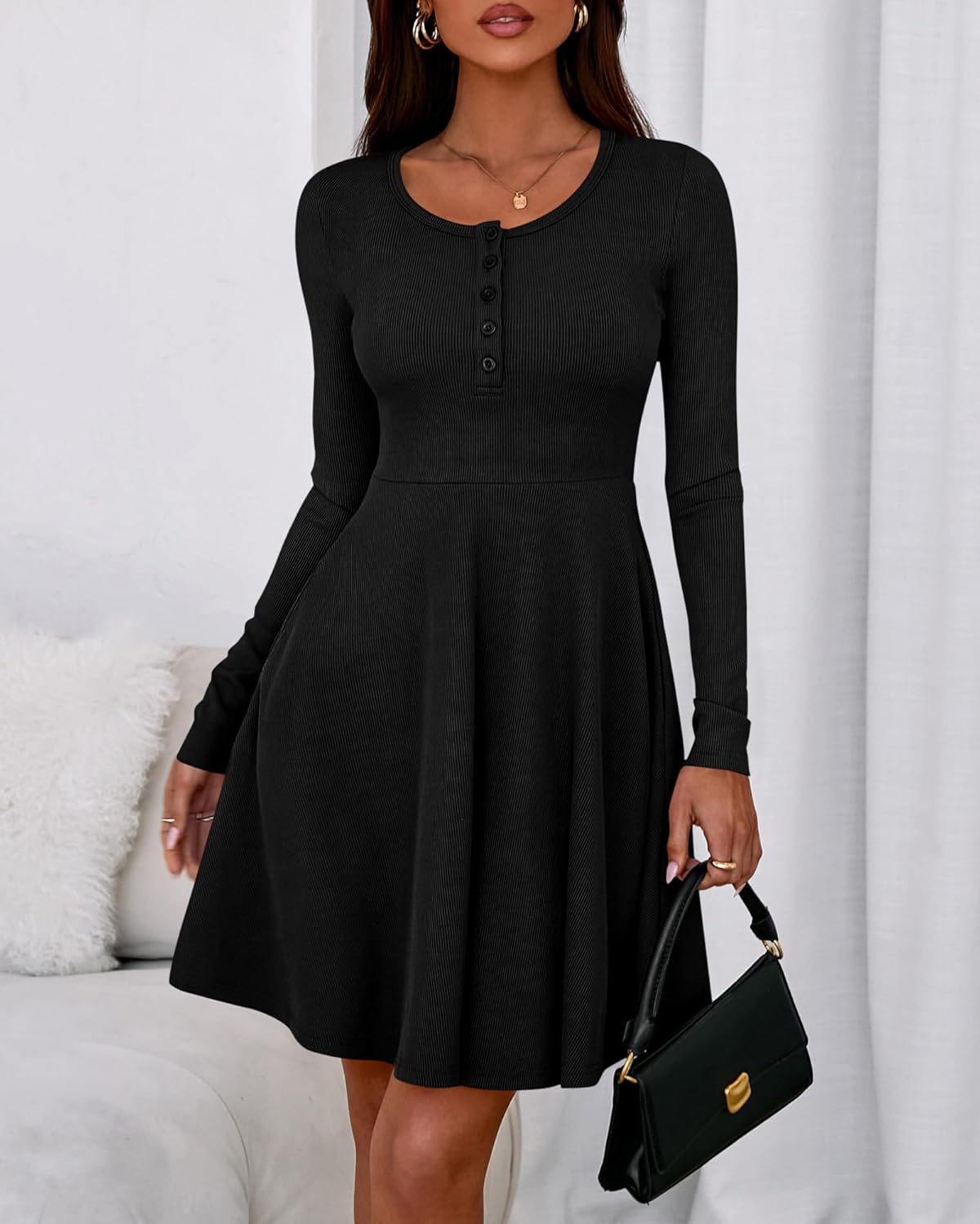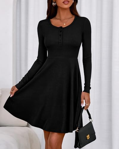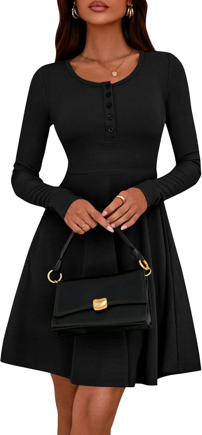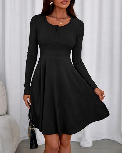 - FEATURE: Womens Fall Dresses / Winter Dresses For Women 2025 / Crew Neck Short Dress / Button Down Dress For Women / Long Sleeve Dress For Women / Empire Waist Dress For Women / a Line Dress / Knit Ribbed Dress For Women / Fit And Flare Dress For Women / Side Pockets / Knee Or Above Knee Length