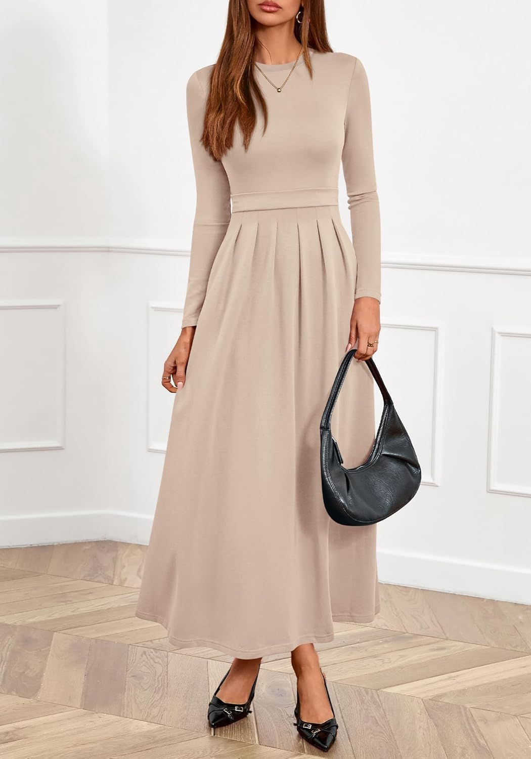 - DESIGNS: The Fall Dresses For Women Adopts Long Sleeve And Elastic High Waist, Exudes a Elegant Charm. The Flared A Line Shape And Pleated Details On The Long Dress Creates a Playful Effect