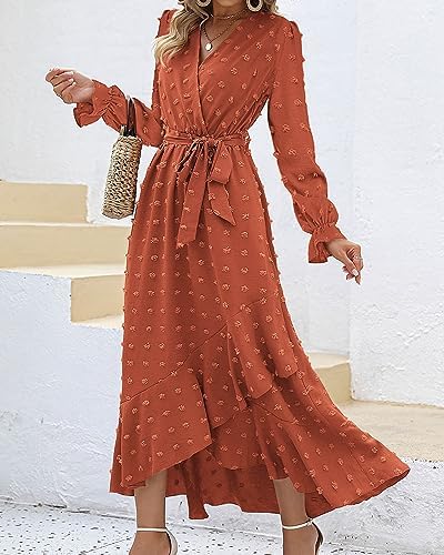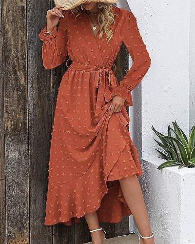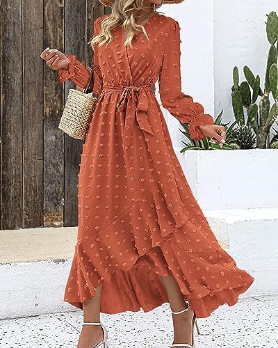 BTFBM Elegant Swiss Dot Dress Long Sleeve V Neck Dress For Spring Summer Fall Brand: BTFBM Gender: Women , Ladies , Girls Clothing Type: Women’s Dresses, Women’s Casual Dresses Material: 100% Polyester Pattern: 3D Swiss Dot Length: Maxi, Above The Ankle Length Closure: Snap Closure Neckline: Cross V Neck Style: Casual / Cute / Vintage / Stylish Fitness: Loose Fit Sleeves: Long Sleeve Unique Design: Self Tie Belt / Pleated Wrap Hem Color: Black, Dark Green, Wine Red, Navy, Blue, Orange, Purple, Yellow Season: Spring / Summer / Fall Occasion: Daily Life / Dating / Office / School / Home / Family Gathering / Vacation / Holiday / Travel / Birthday / Evening / Cocktail / Party / Homecoming / Graduation / Weddings / Church / New Year / Valentine’s Day / Easter / Mothers’ Day / Halloween / Thanksgiving Day / Christmas / Festival / Gifts / Presents / Fashion Photoshoot / Chic Street Wear