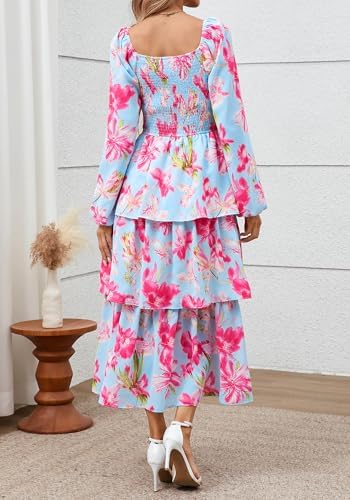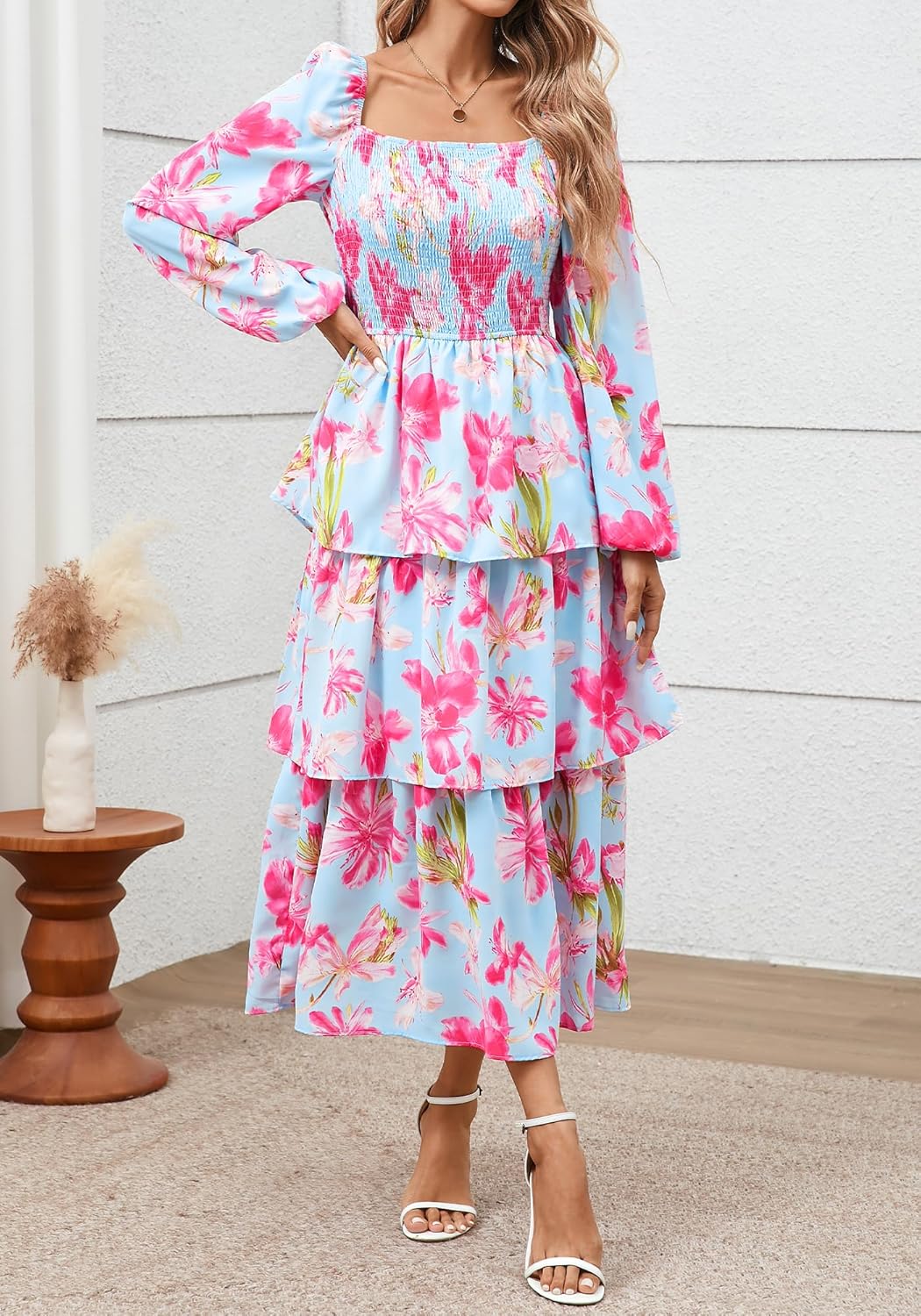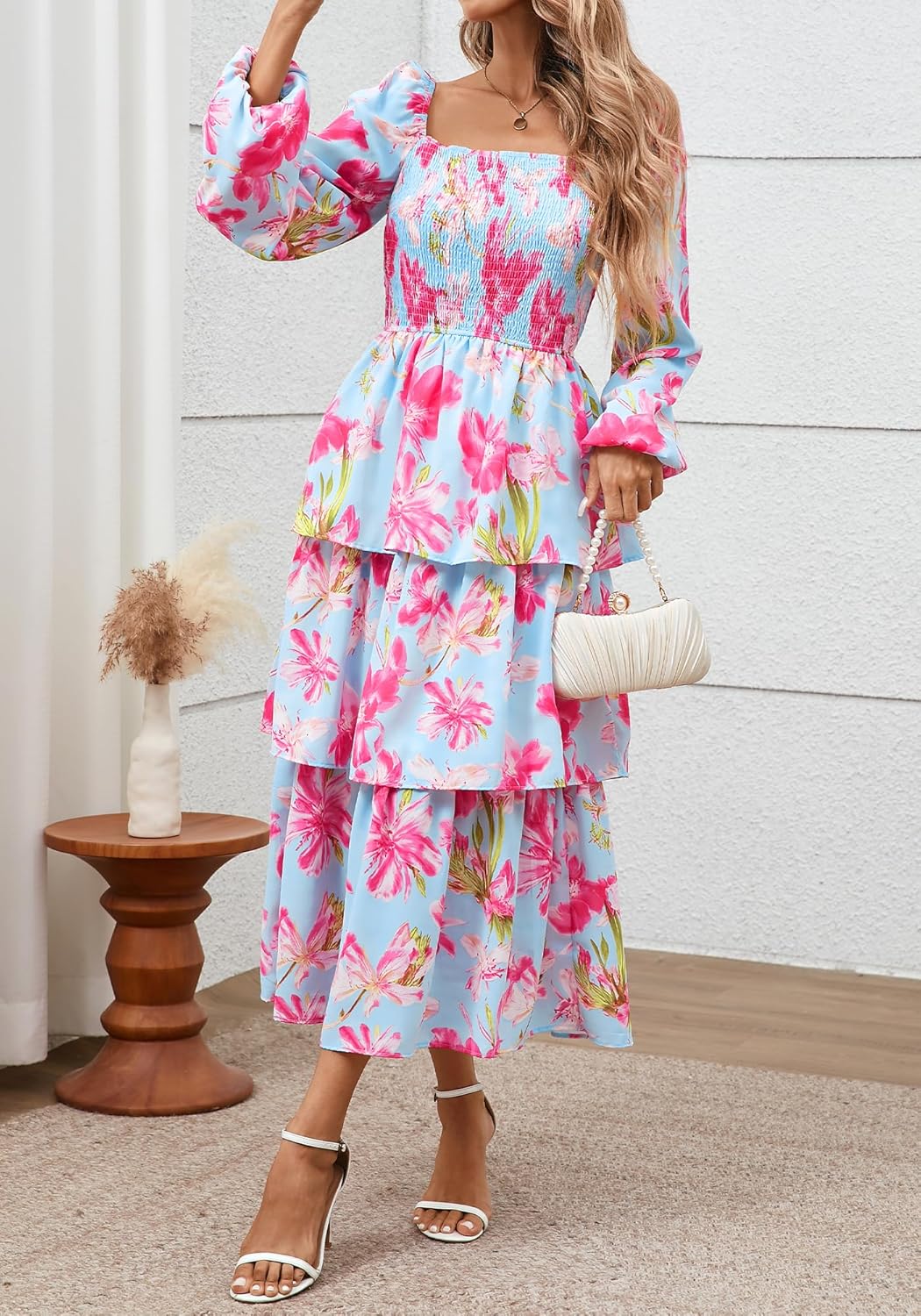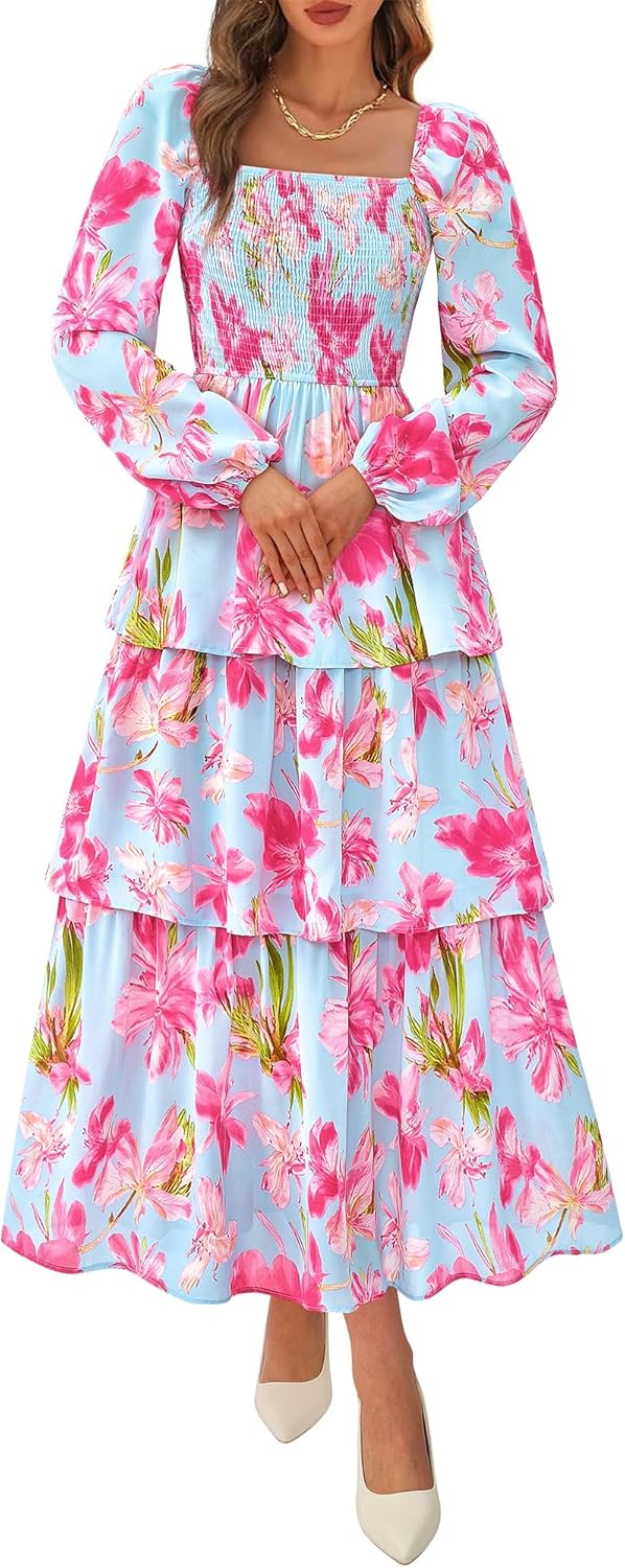 - FEATURES: S=US 4-6, M=US 8-10, L=US 12-14, XL=US 16-18, XXL=US 20 / Maxi Dress / Square Neck Dress / Long Sleeve Dress / Floral Dress / Ruffle Dress / Tiered Dress Women / Smocked Dress Women / a-Line Dress / Lightweight / Comfy To Wear / For Spring, Summer, Fall