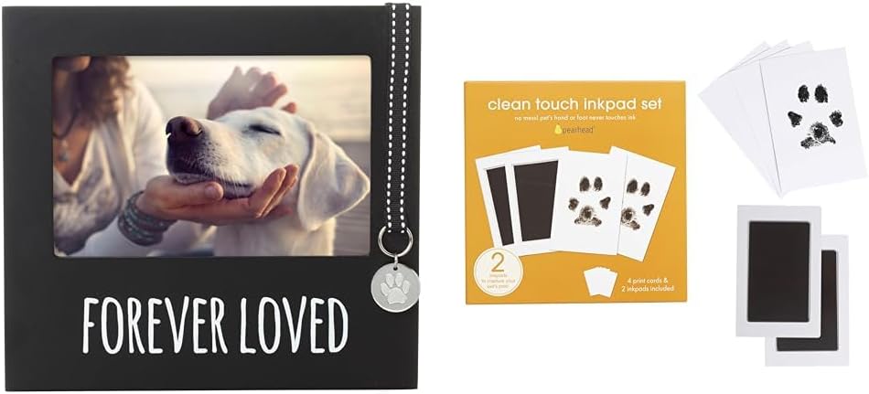 Bundle of Pearhead Forever Loved Pet Keepsake Picture Frame + Pearhead Paw Print Clean-Touch Ink Pad, Mess Free Inkless Pet Pawprint Impression Kit, Pack of 2
