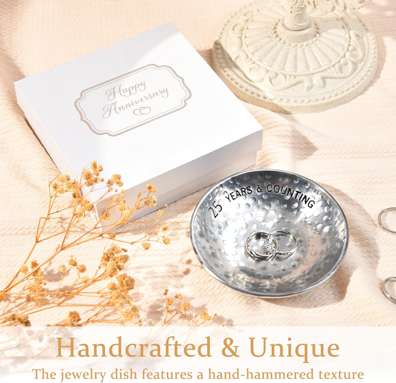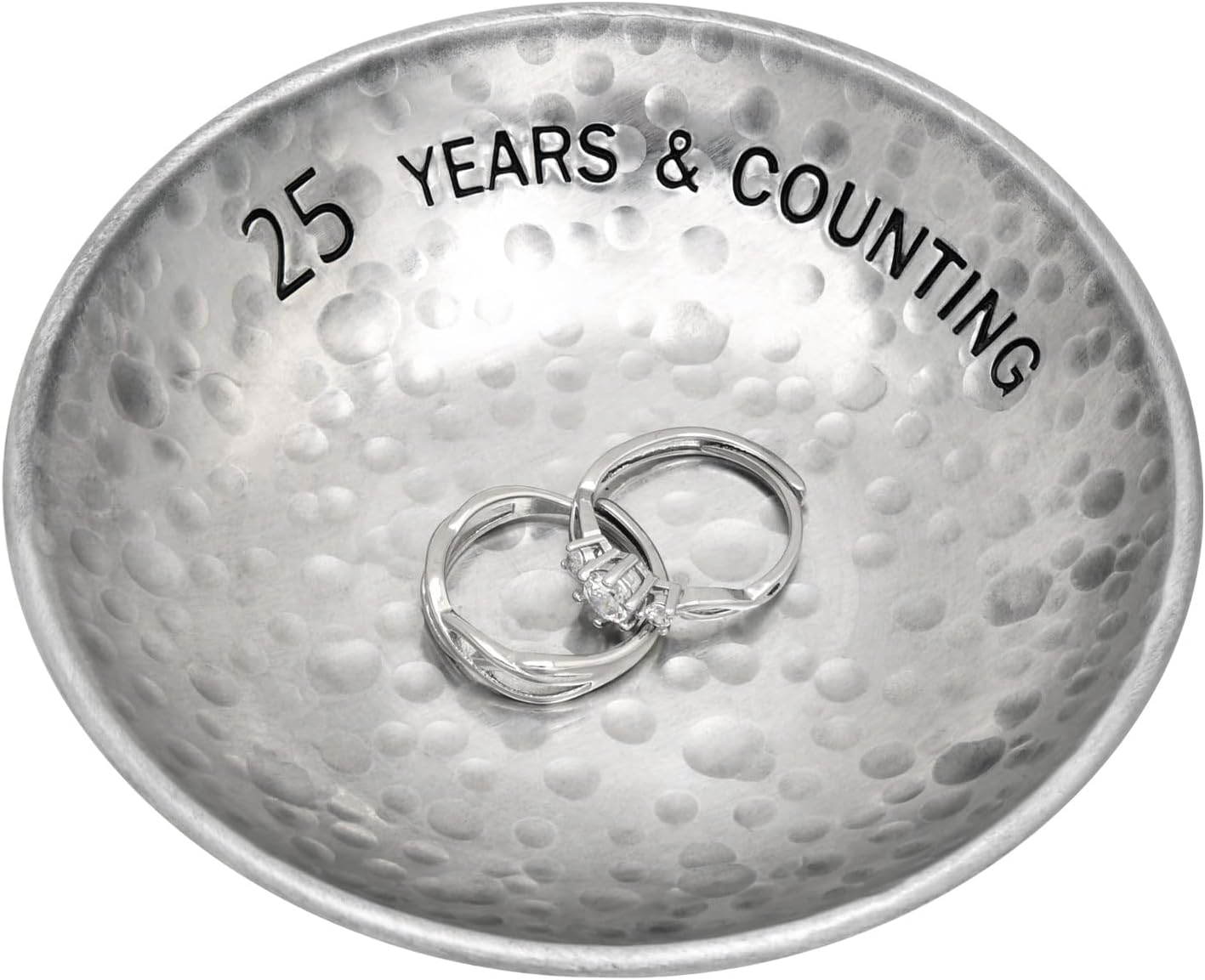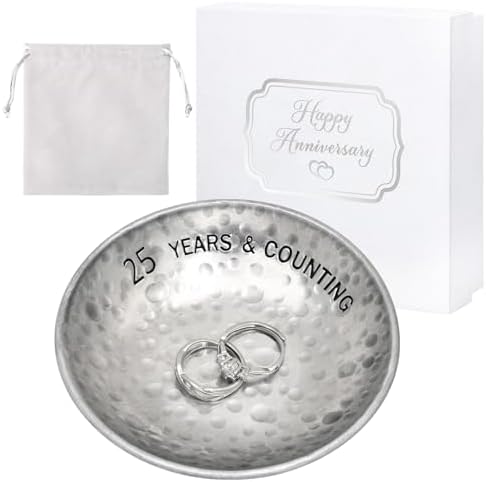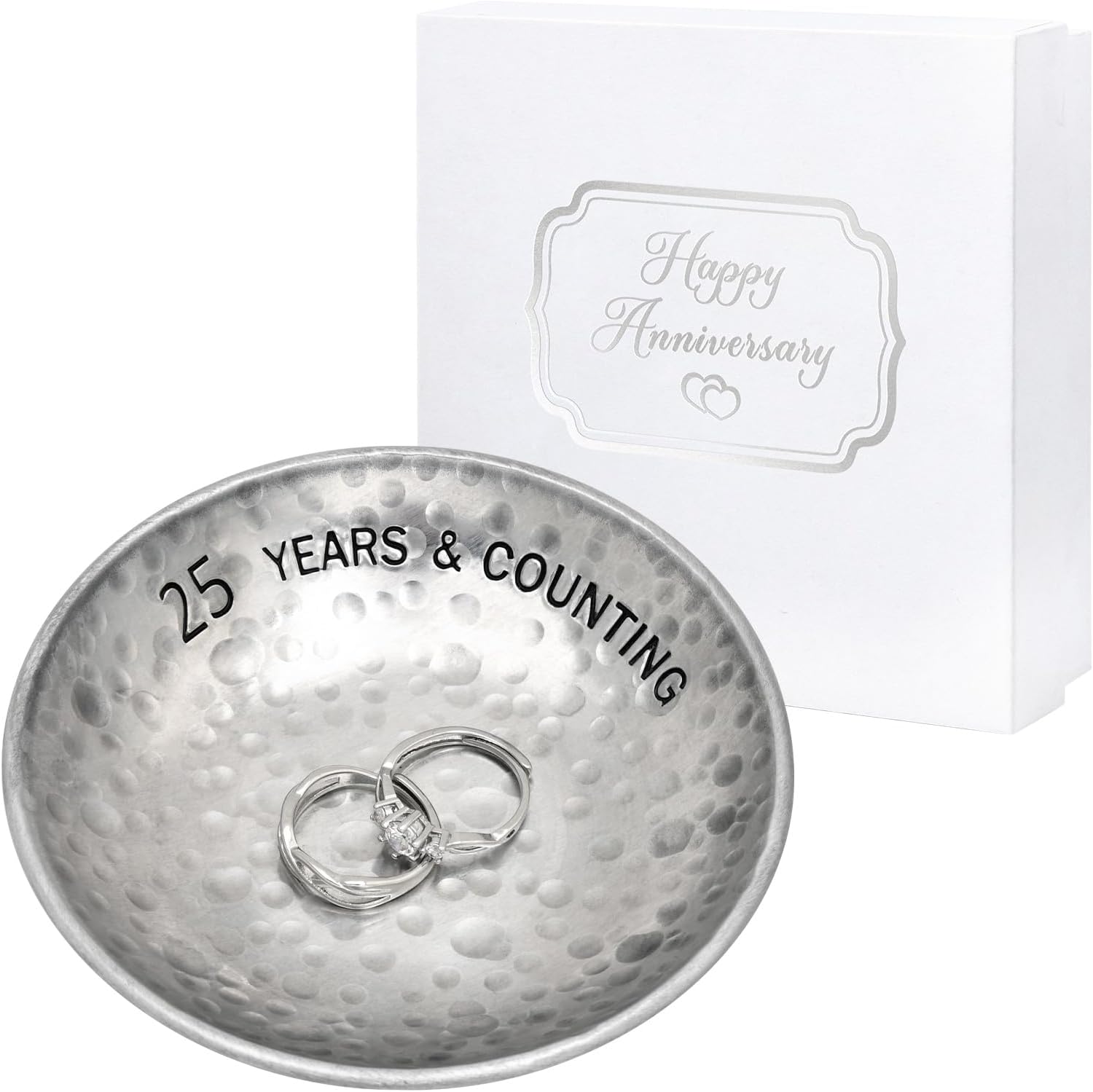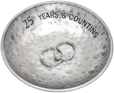 - 25th Anniversary Gift – This creative 25th anniversary gift symbolizes the wonderful and unique journey you’ve shared. Celebrate your 25th anniversary with this handcrafted jewelry dish. Your anniversary gift should be both meaningful and practical, and this ring dish is the perfect accent for your nightstand.