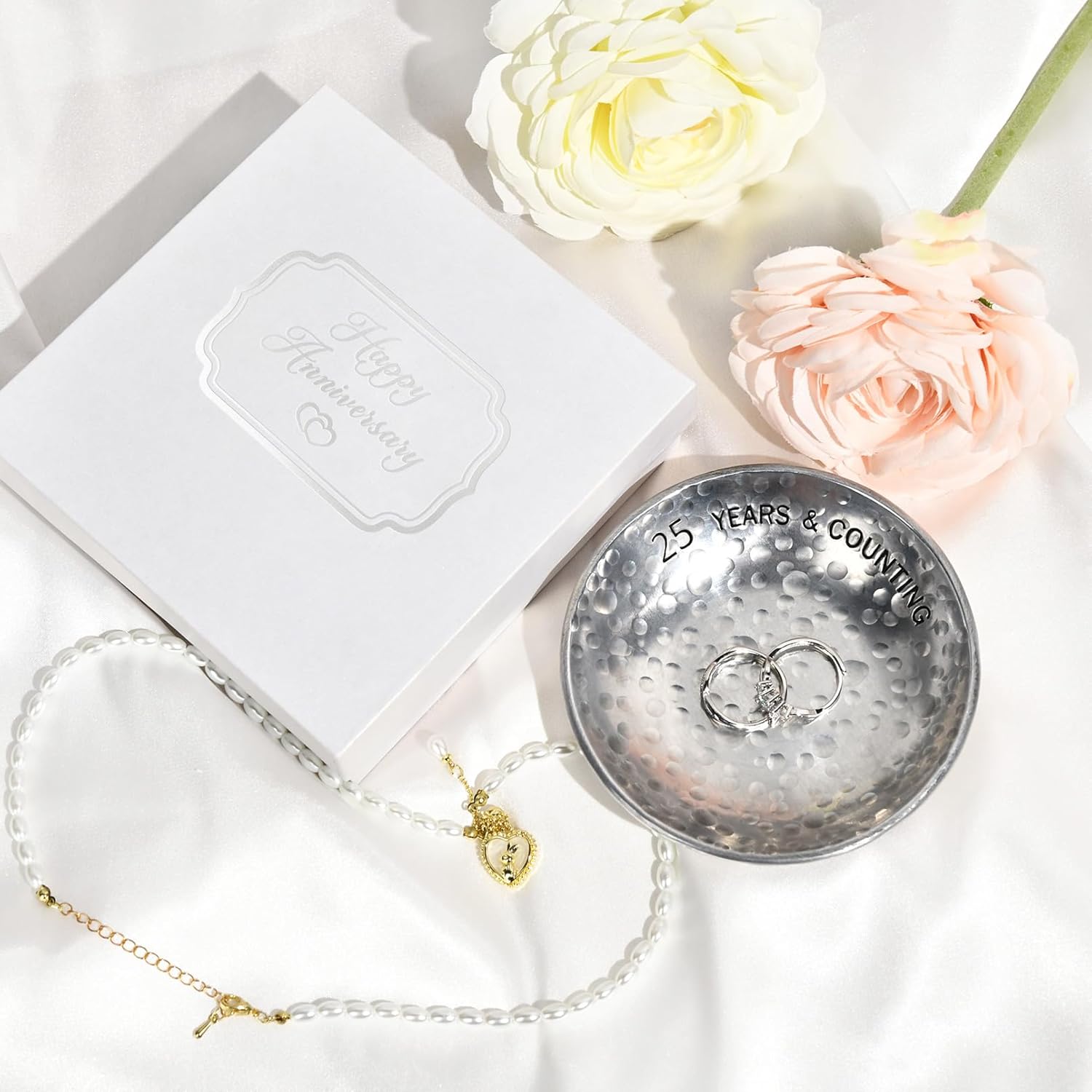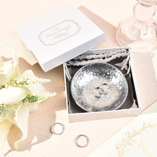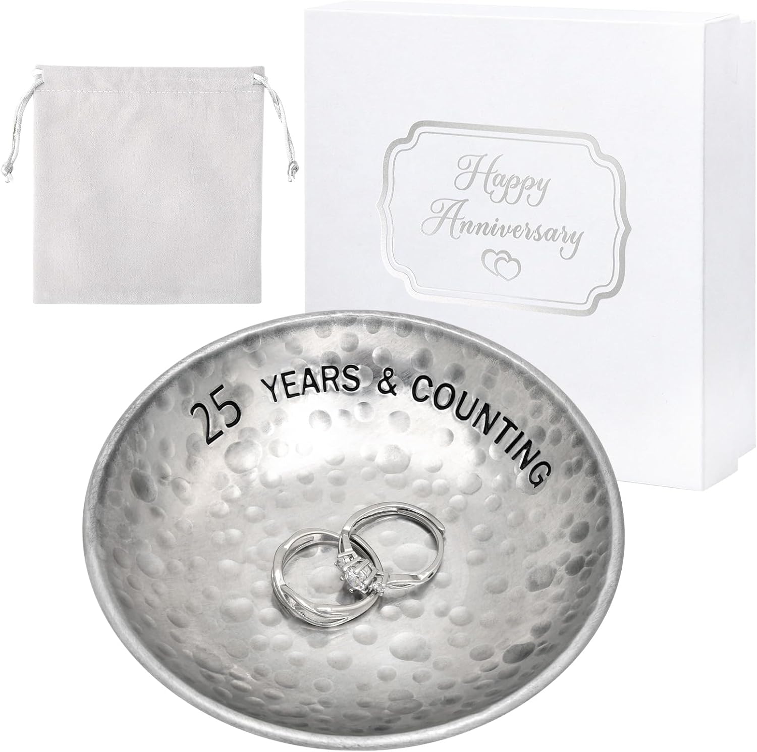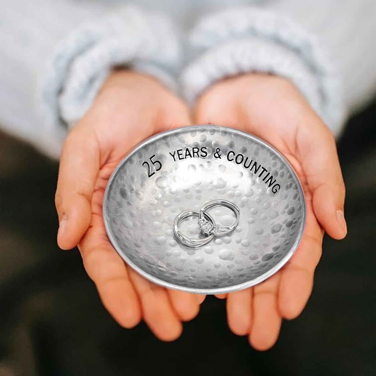 - 25th Anniversary Gift – This creative 25th anniversary gift symbolizes the wonderful and unique journey you’ve shared. Celebrate your 25th anniversary with this handcrafted jewelry dish. Your anniversary gift should be both meaningful and practical, and this ring dish is the perfect accent for your nightstand.