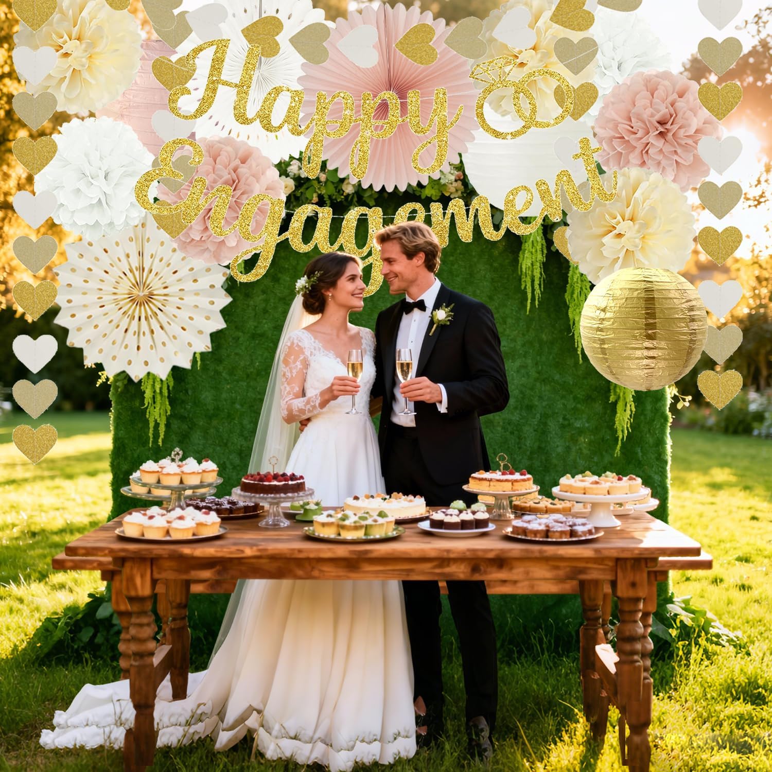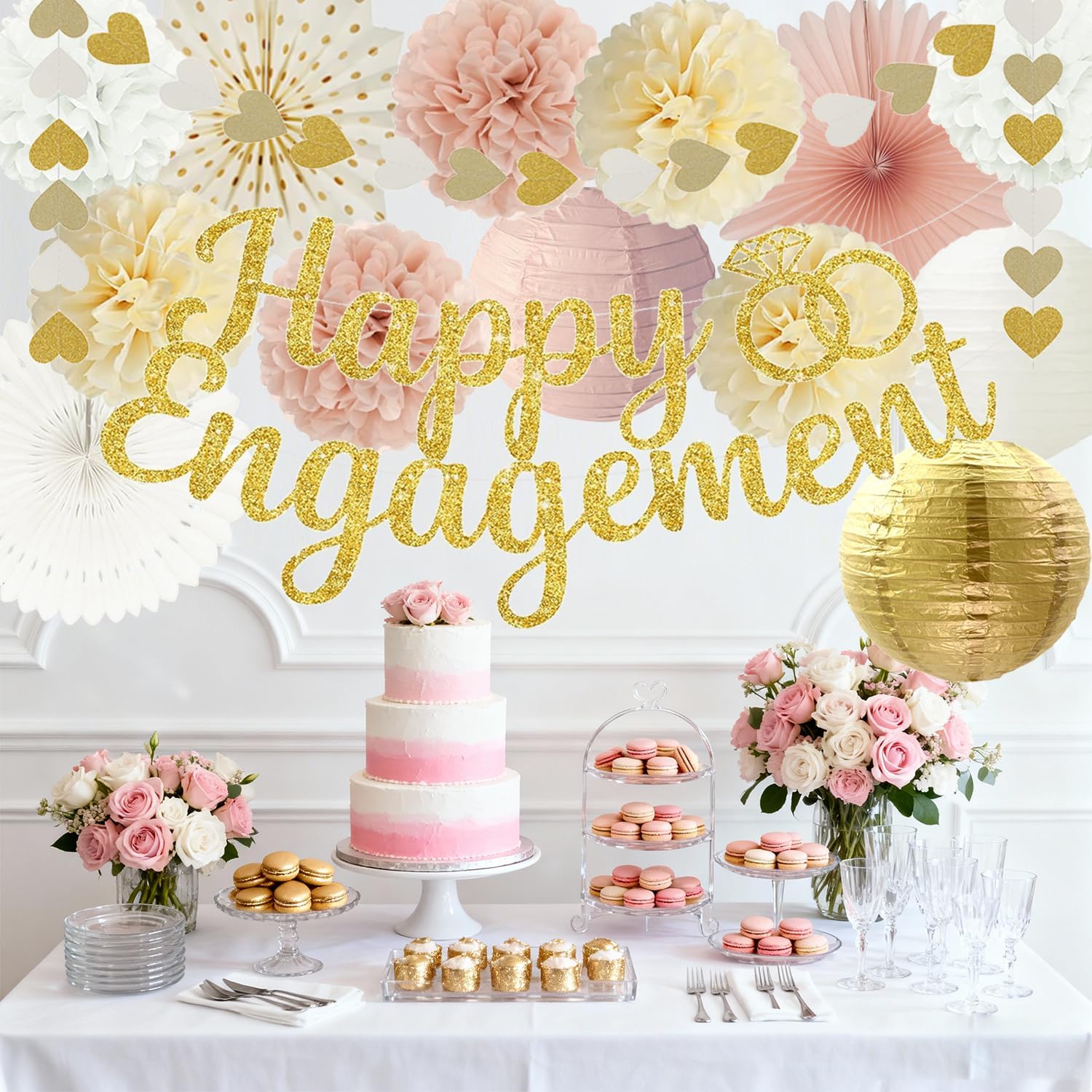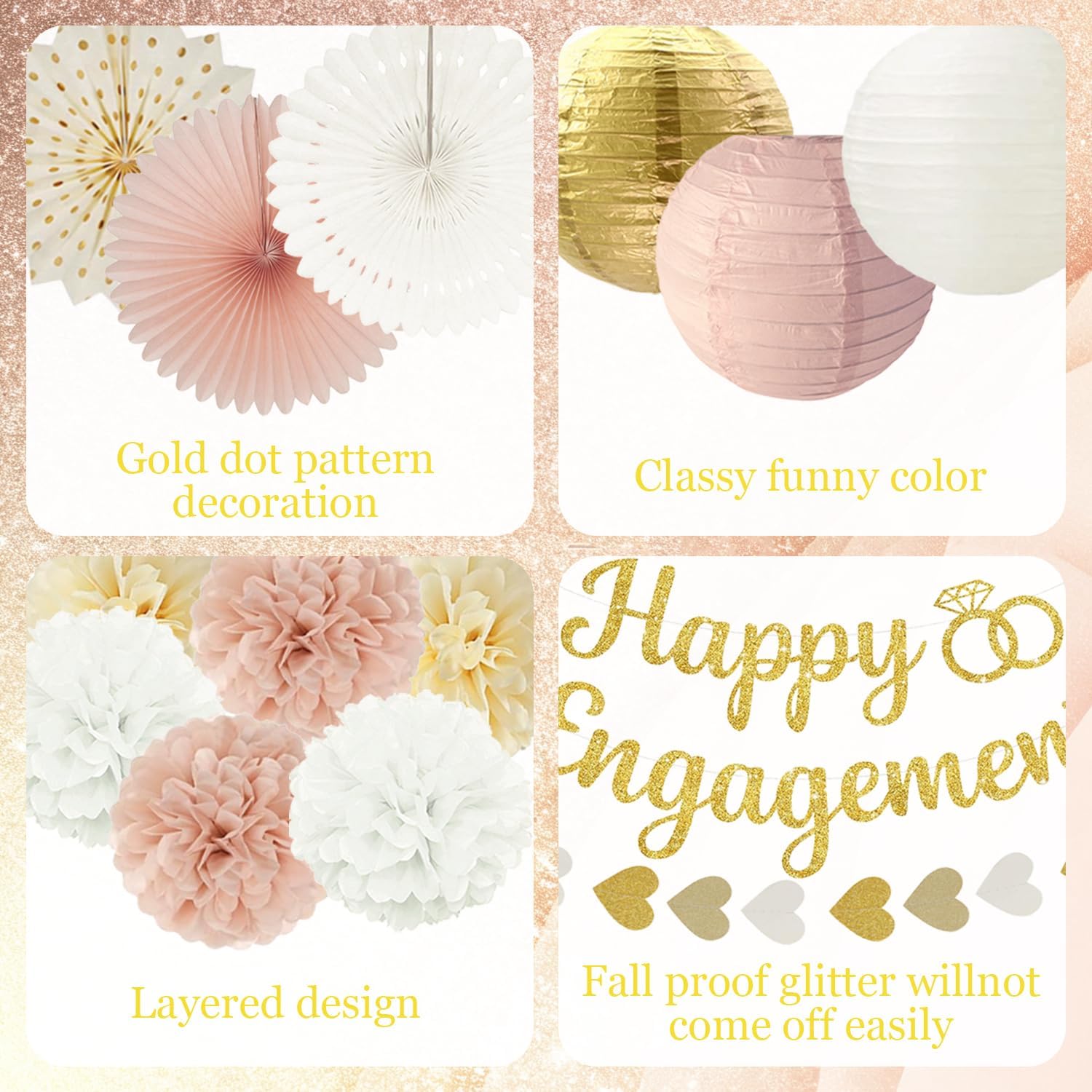 - 【Special Theme】This boho congratulations decorations features a color combination of champagne gold, beige, and peach pink. It has free-spirited, romantic design details, and it perfectly creates that sweet, special atmosphere for an engagement