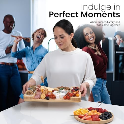 - IDEAL GIFT SET: This elegant bamboo charcuterie board set makes a memorable Mothers Day gift for mom, and a great gift for women, men, couples, or anyone who loves hosting. Whether for him, her, or a couple, this cheese board set is a stylish and practical addition to any home. Perfect for romantic dinners, anniversaries, or as a thoughtful gesture, it adds a touch of sophistication to any special occasion.