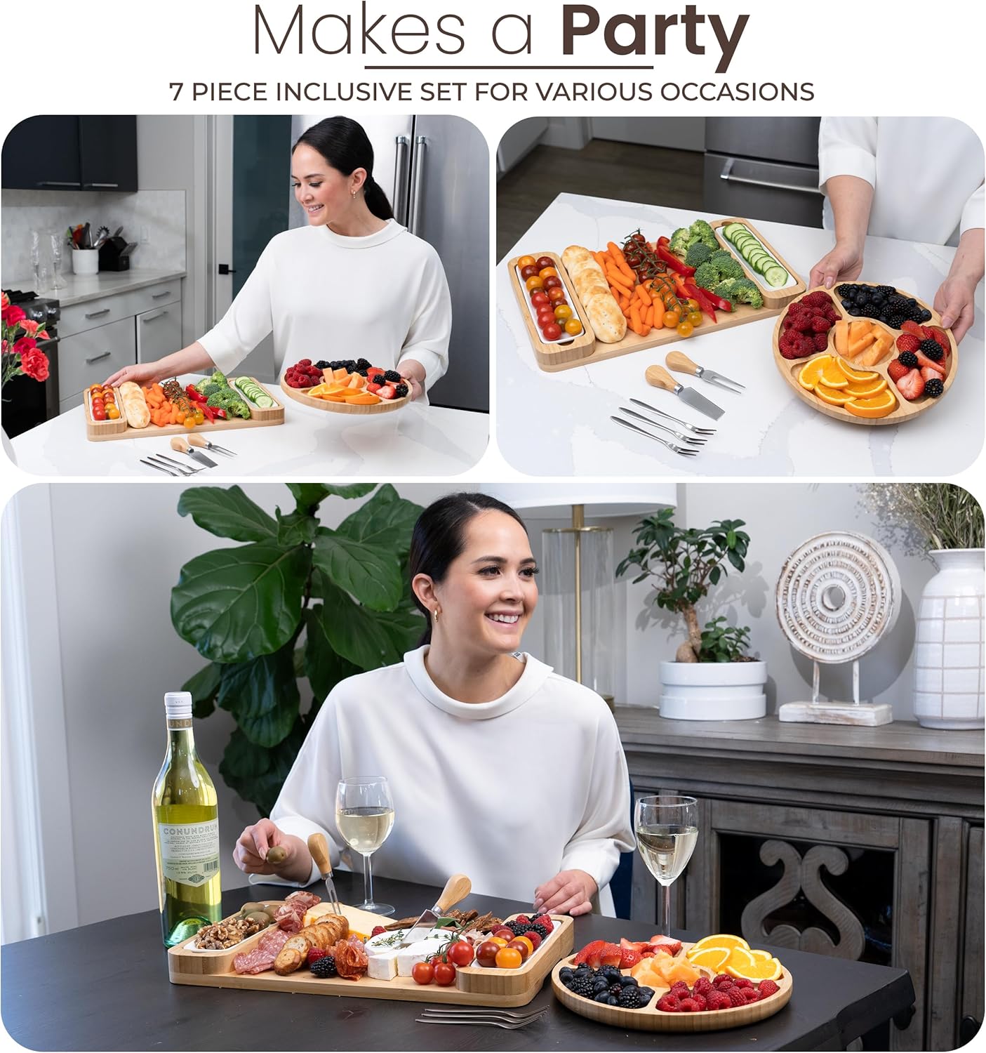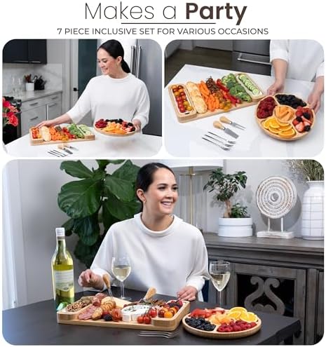 - COMPLETE ENTERTAINING SET: All you need for impressive hosting in one set! Includes a large cheese board, round tray, ceramic bowls, cheese knives, and serving forks – perfect for meats, cheeses, fruits, and snacks. This all-in-one set makes it easy to create stunning spreads for holiday dinners, wine nights, and more.