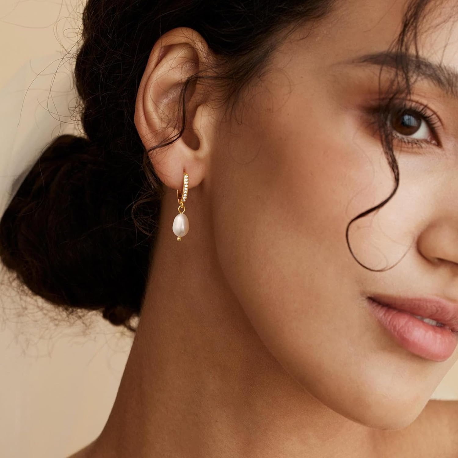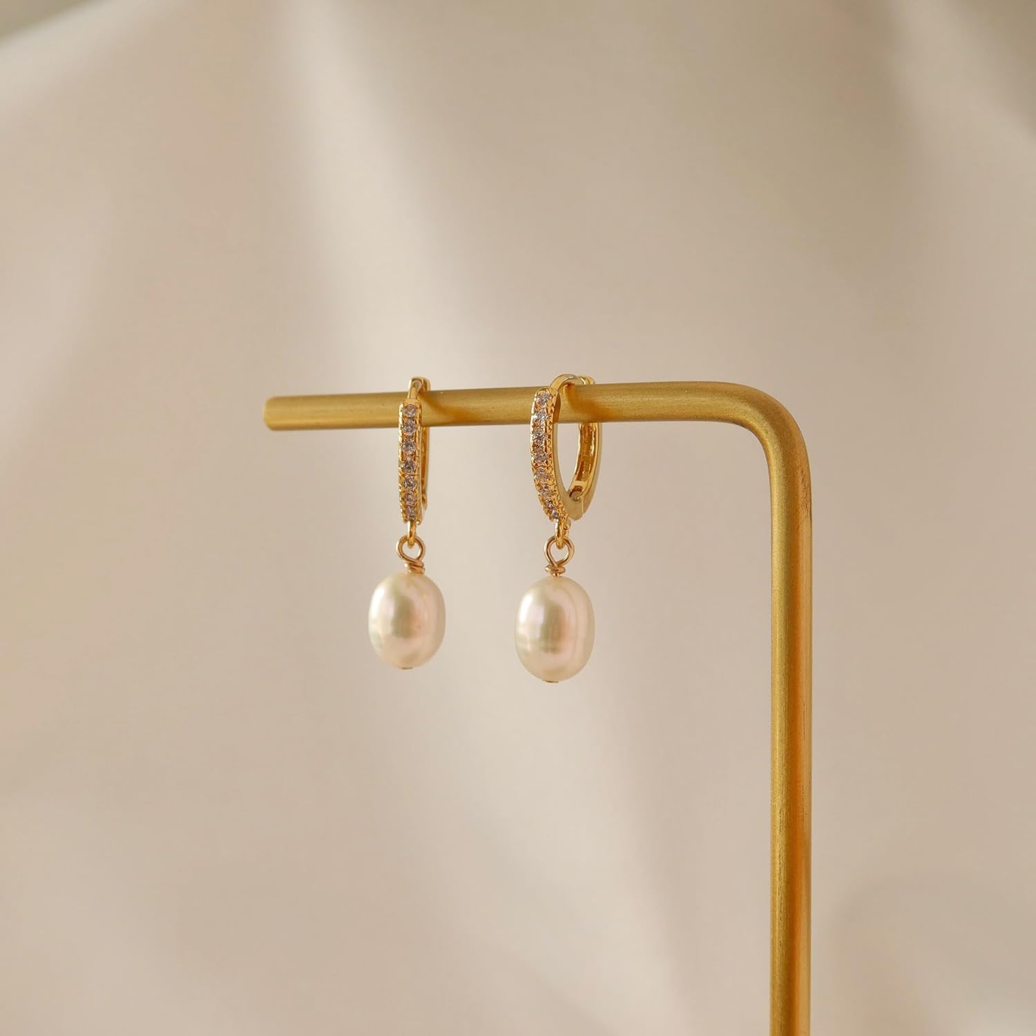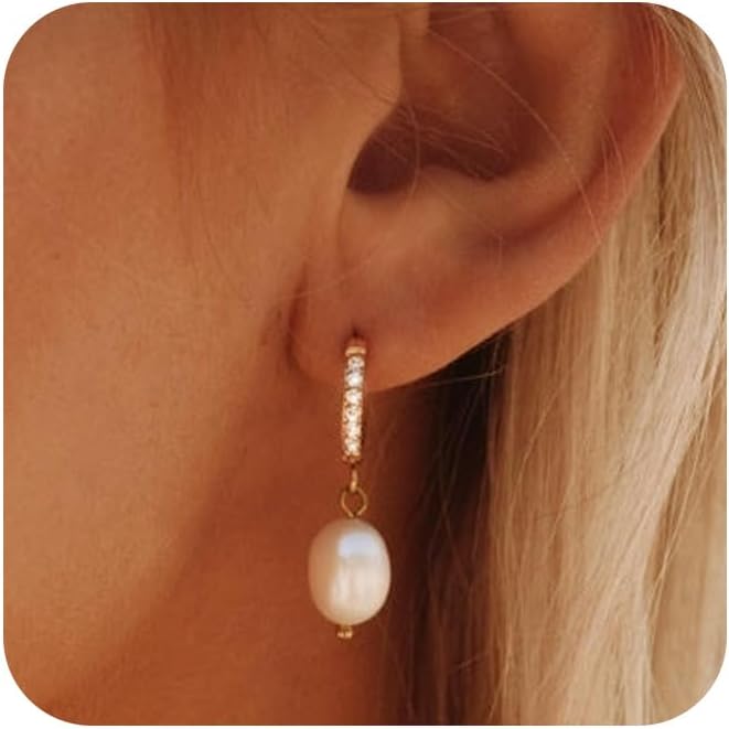 • Pearl Earrings: Elegant hoop earrings for women are crafted with 14k gold plated brass. The lightweight design makes it comfortable to wear all day