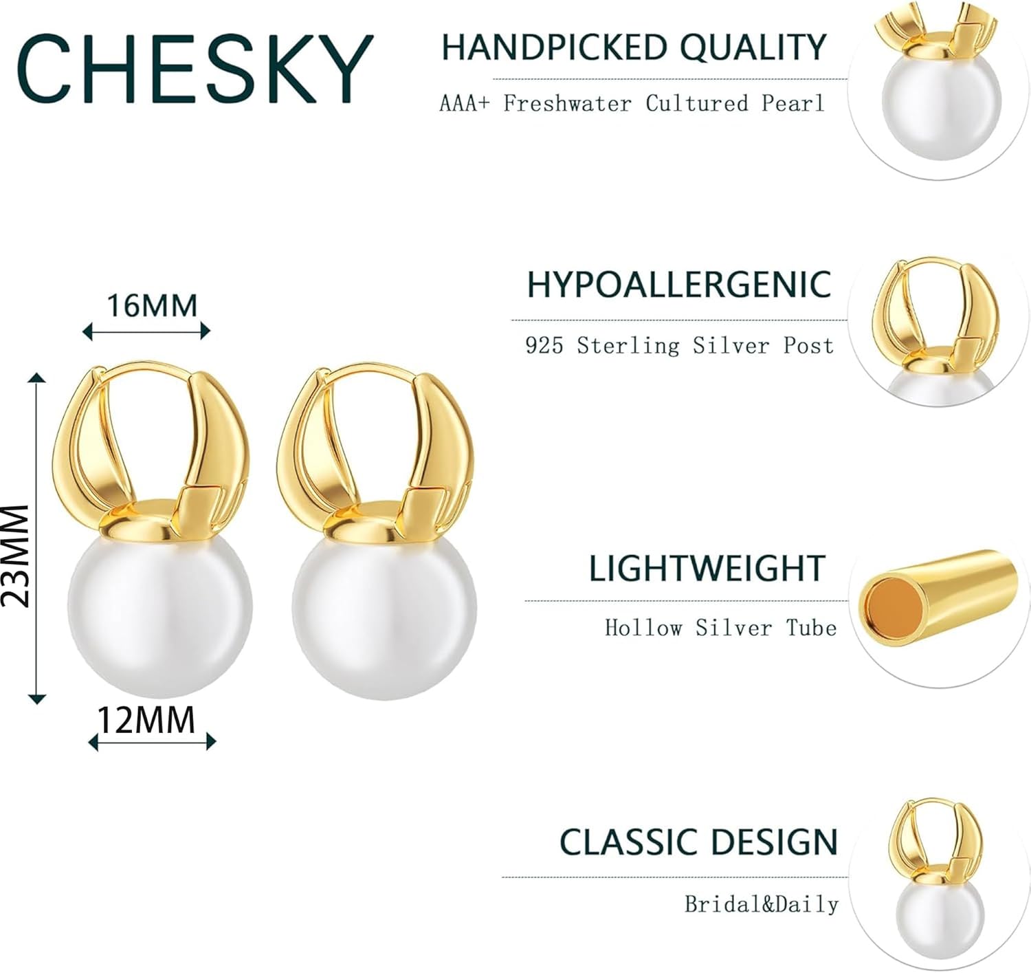 • ⚪ Dainty Pearl: Our earrings feature AAA+ grade freshwater cultured pearls and are designed for easy wear.