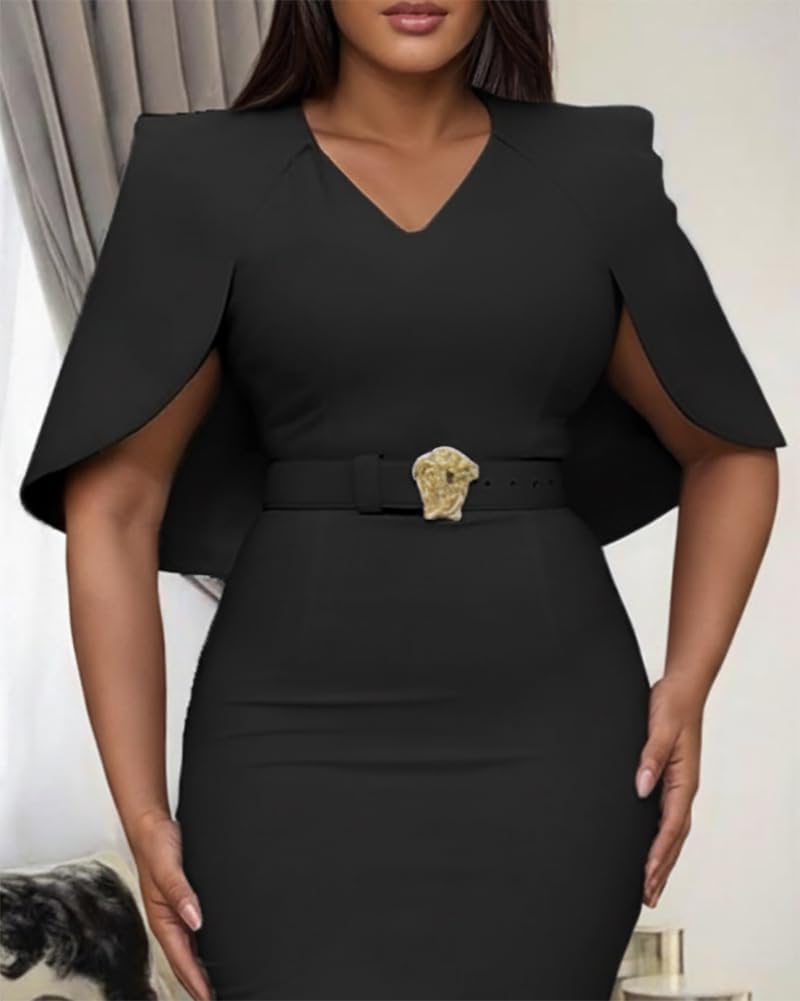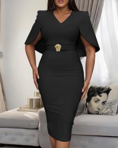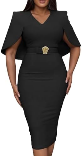 - Design:This elegant midi pencil dress features cape sleeves, a V-neckline, and a bodycon silhouette that flatters your curves. The back slit for easy walking, while the slim fit highlights your waist and elongates your figure for a sleek, feminine look