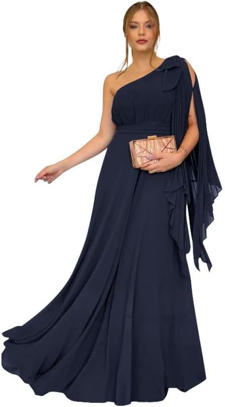 Chiffon Bridesmaid Dresses for Women 2025 One Shoulder Pleated Formal Gowns Long Wedding Guest Dresses