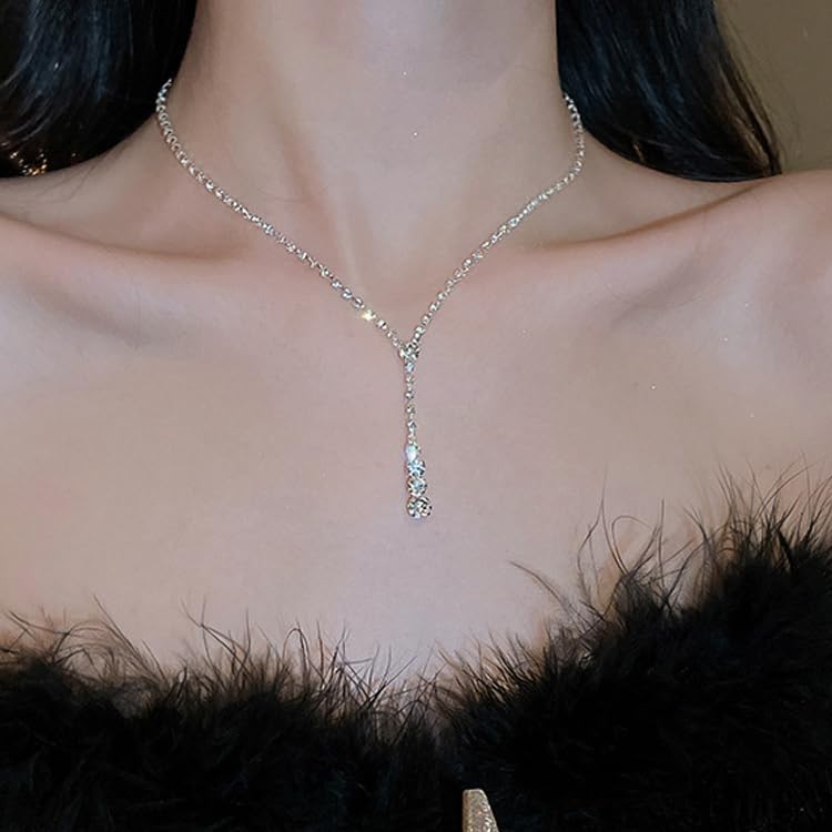 - Suitable Size:Silver Rhinestone Necklace Length 12.2″” (with 4.3″” Extension Chain). The drop earrings are 1.8″”/1.2″” long. The circumference of the cluster rhinestone bracelet is 7.5” (with a 2.4” extension chain.) Another elastic bracelet is adjustable, with a circumference of 7.8”-11.8”