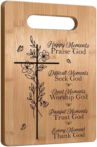 - 【Great Christian Gifts for Any Occasion】It spreads courage and strength to the recipient and makes a perfect religious gift for women. This meaningful Christian gift for women will help you encourage her soul and inspire her to go deeper in faith, and remind her of how much our Heavenly Father cares for us. It makes an ideal Christian gift for Birthdays, Mother’s Day, Christmas, or any other occasion. This engraved cutting board with Christian quotes will make them feel special and surprise.