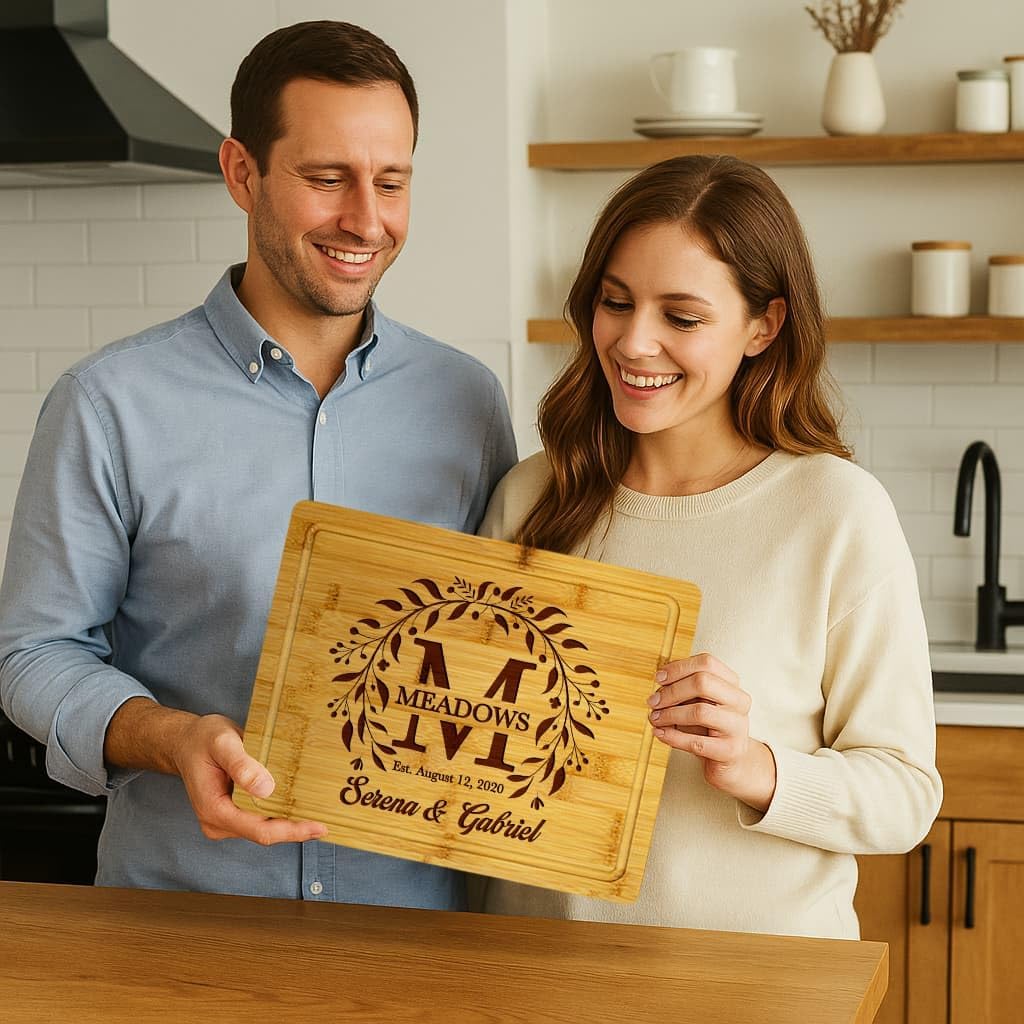 • Perfect Gift for Every Occasion – Thoughtfully designed for weddings, bridal showers, anniversaries, and Christmas, this personalized cutting board is a heartfelt gift that celebrates love and commitment.
