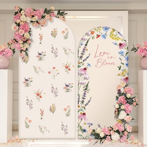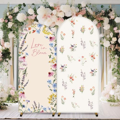 - Double Sided Arch Backdrop: this fabric love in bloom baby shower themed arch backdrop cover is design with double side prints, the front and back are wildflower print, the double-sided arch backdrop stand cover can be easily enhanced by adding flowers, balloons, or other decorative elements to match your event theme or personal style