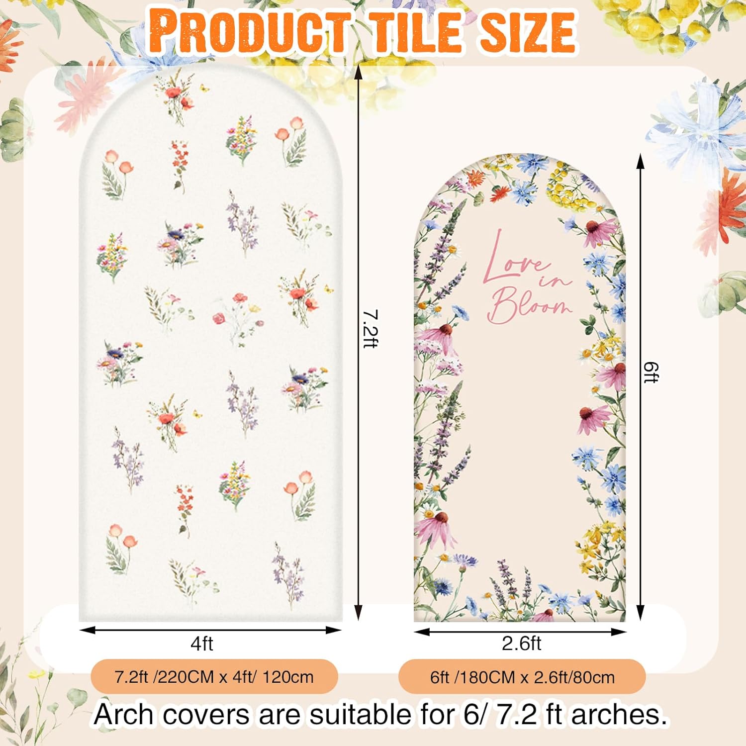 - Arch Cover Size: these cute baby shower wedding arch covers are approx. 3.9 x 7.2 ft, 2.6 x 6 ft, fit for round top arch stand, easy to carry and store; This arch backdrop cover is suitable for indoor/outdoor photo shoot photography; Decorate your party backdrop with our arched cover to create an epic background for your celebration
