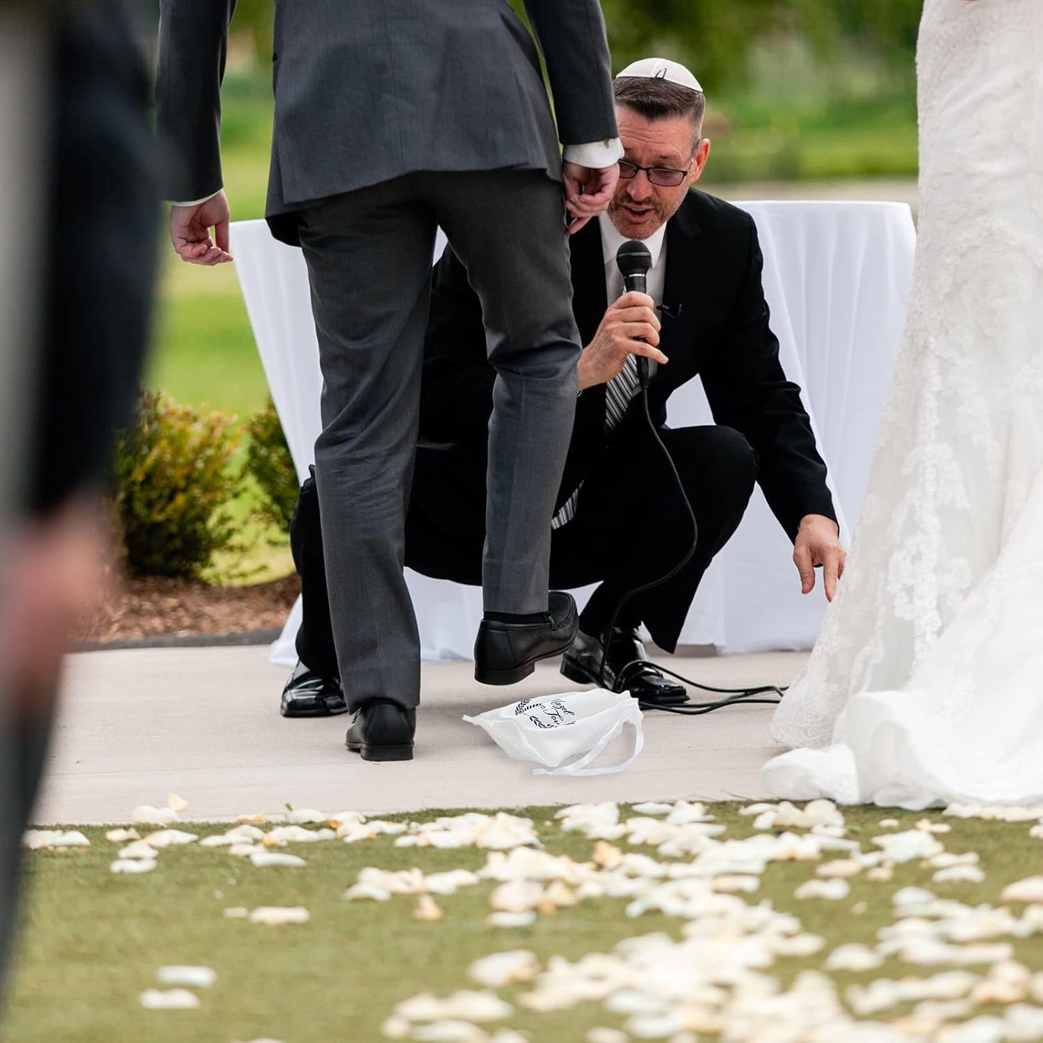 As part of the Jewish wedding ceremony, it is tradition for the groom to step on a wedding glass.The guests respond with “Mazel Tov,” which means good luck.Our color blue designs bring this festive tradition to weddings of interfaith and same-sex couples.