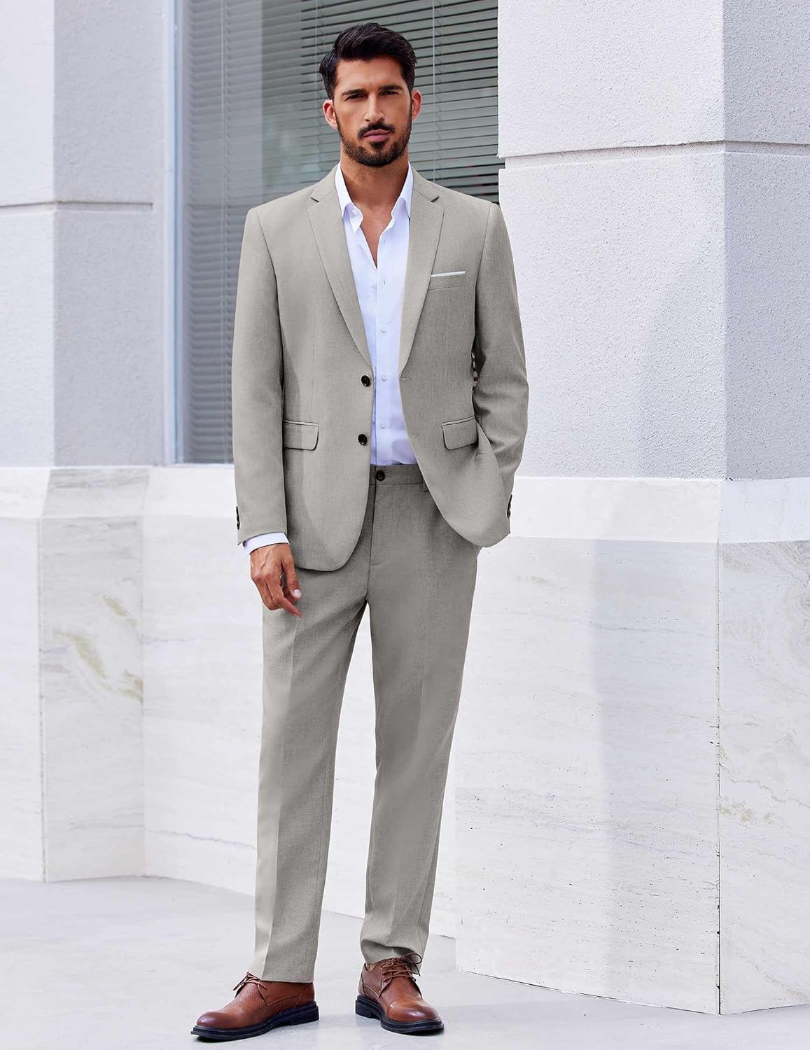 - Multiple Match: Classic fit two piece suit for men pair it with a pure cotton polo shirt and leather shoes for an easy take on business casual occasions; match it with a T-shirt and sneakers to switch to weekend mode—effortless yet stylish