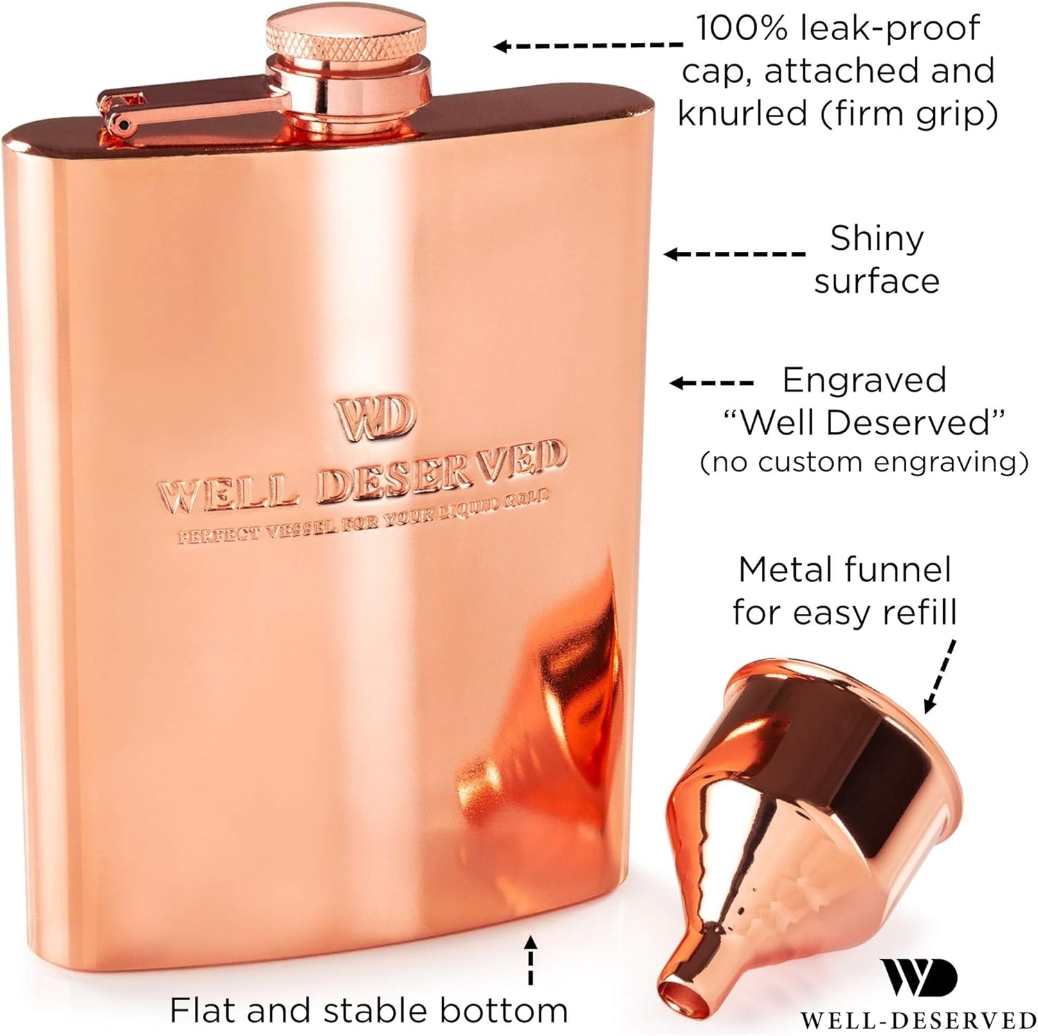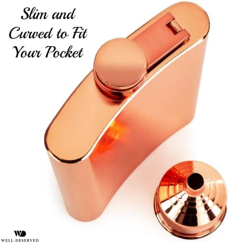 • ⭐ Captivating copper color – this alcohol flask is sharp looking, sleek, and the copper color really stands out. You will be proud to carry this fancy drinking flask so be prepared to get compliments!