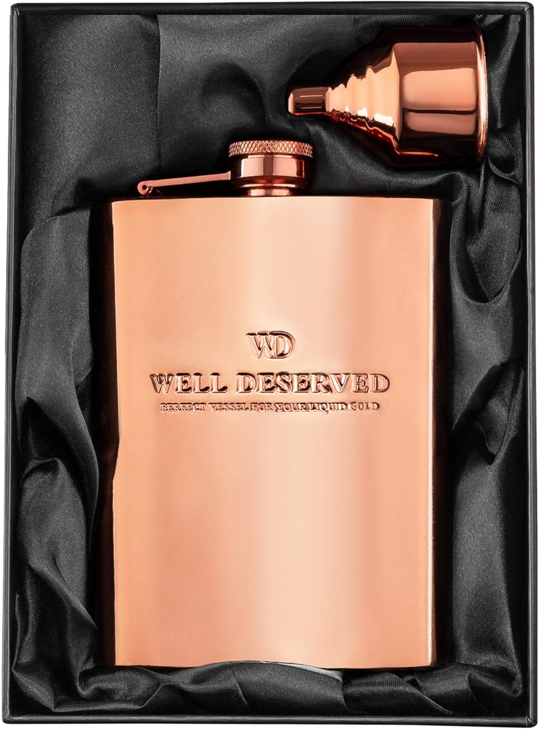 • ⭐ Classy gift packaging – Flasks come in a luxurious black satin gift packaging, perfectly contrasting with the rose gold color, highlighting the hallmark of elegance. Rare to find and sure to impress