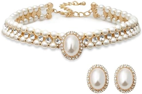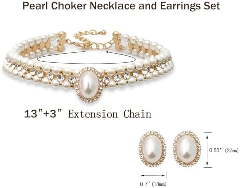 - This Gorgeous Short pearl choker set is Audrey Hepburn Style ,to show it is elegent feature we made of high quality glass pearl and purified crystal Rhinestones to get this Shiny hand made dainty 1920s Chunky Costume Pearls Necklace Choker Rhinestones Pendan jewelry sets
